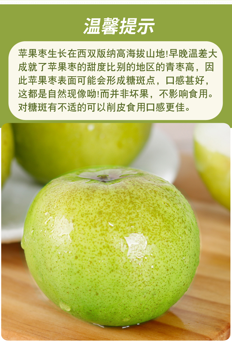 食欲跳动 清脆可口 滑嫩多汁 云南版纳糖斑苹果枣 16颗天地盖礼盒(单果约120-140g ) 绿色(单位:盒)