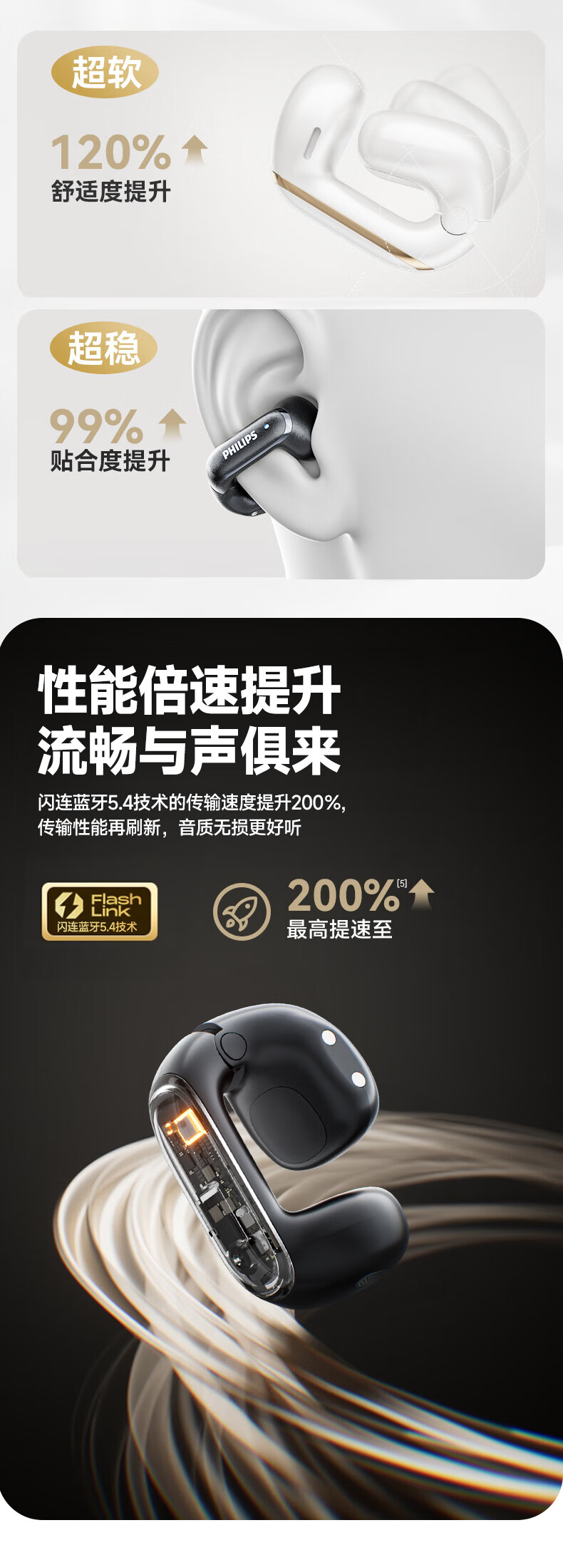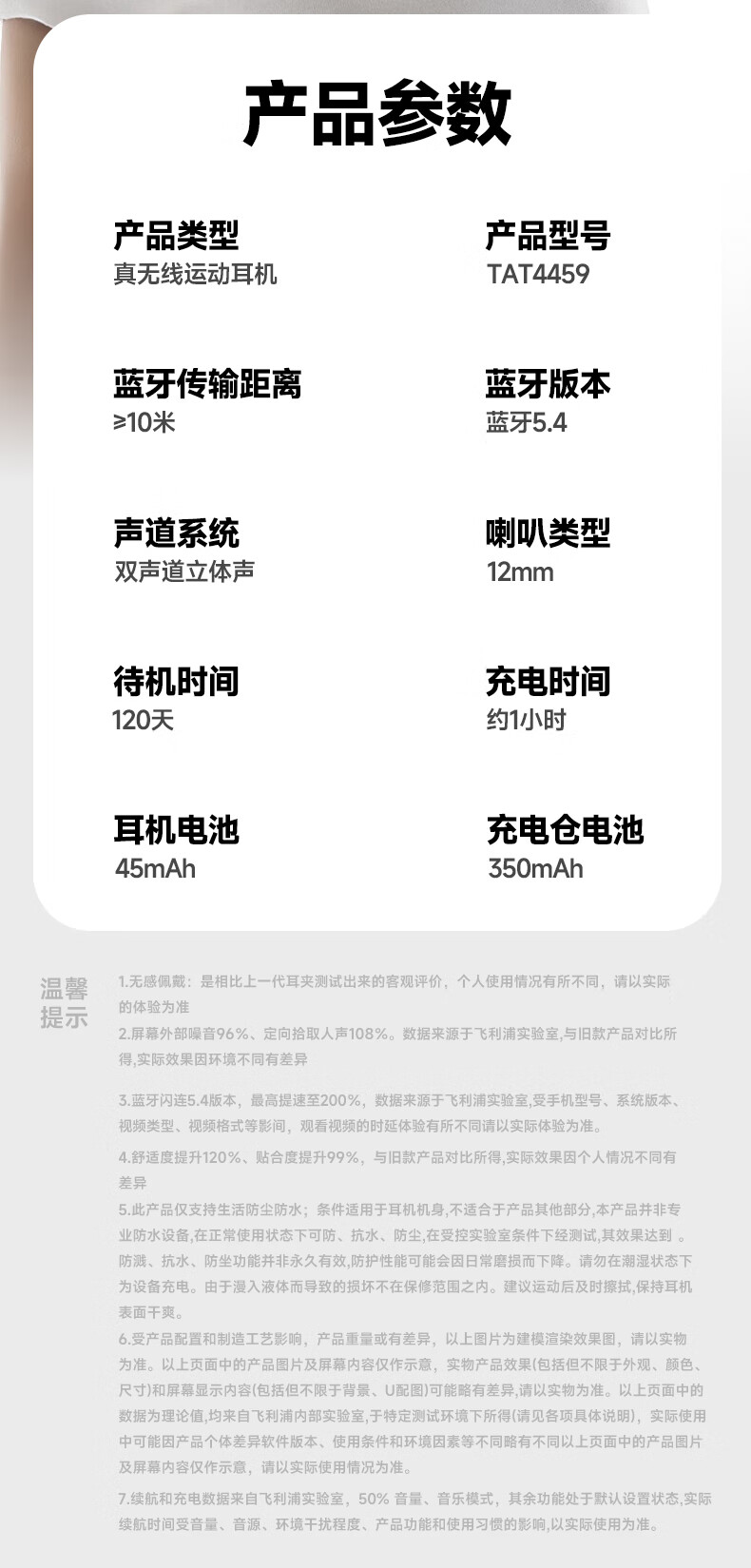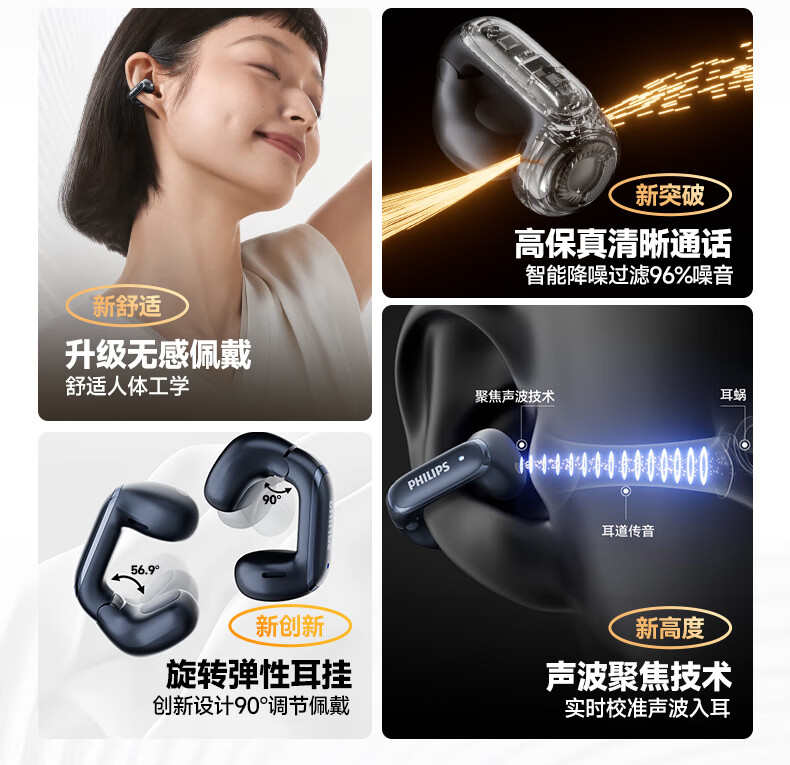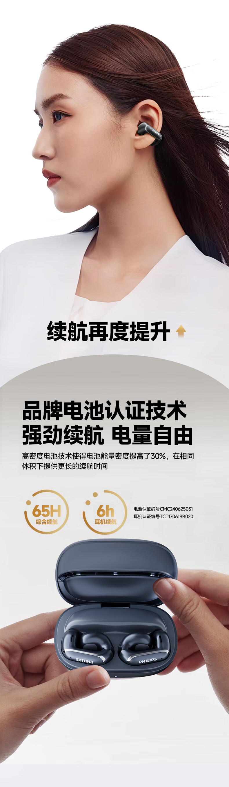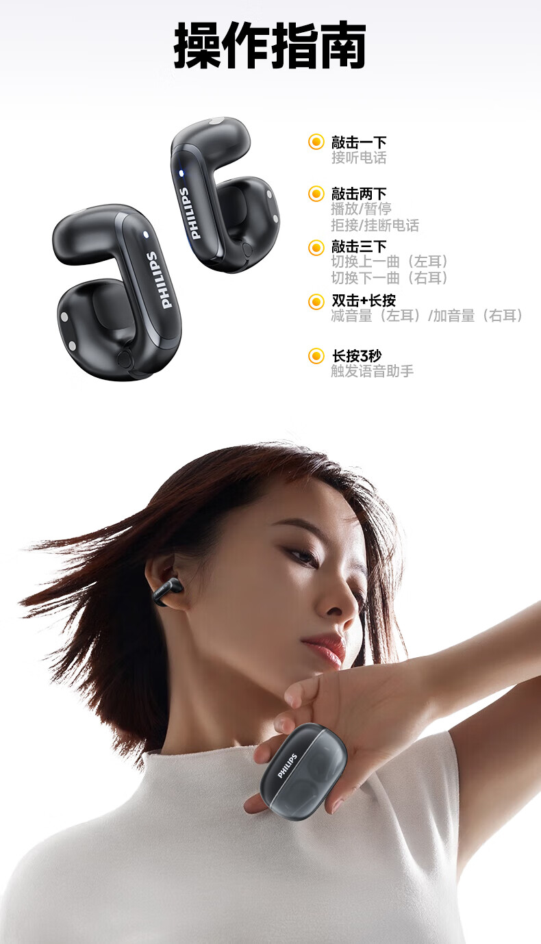 飞利浦(PHILIPS) 耳夹式蓝牙耳机 TAT4459 350mAh 白色(单位:副)