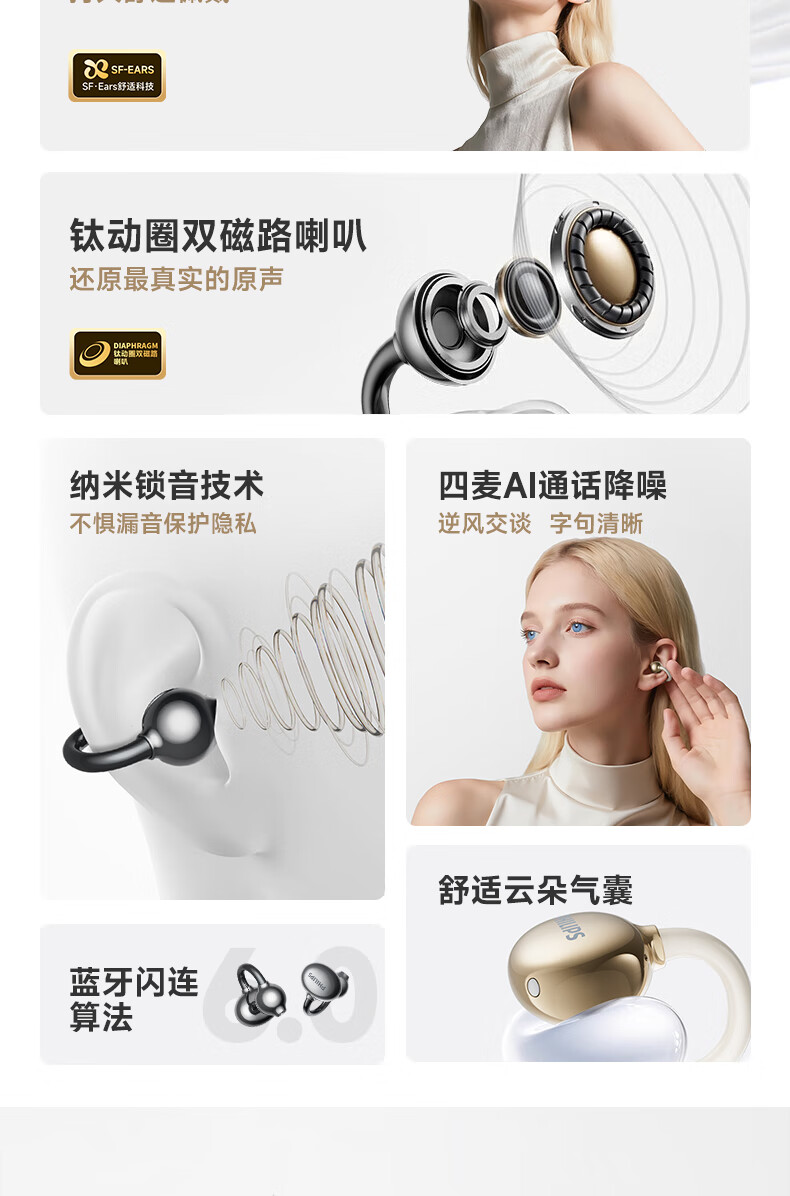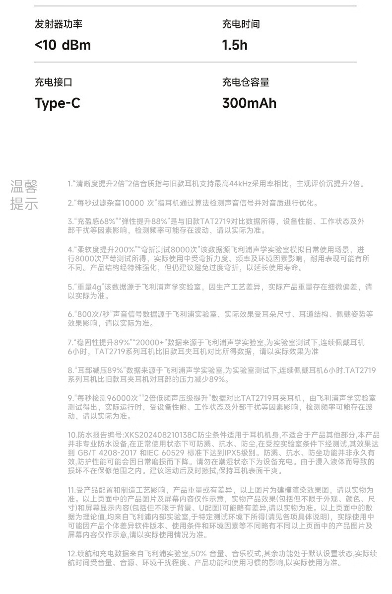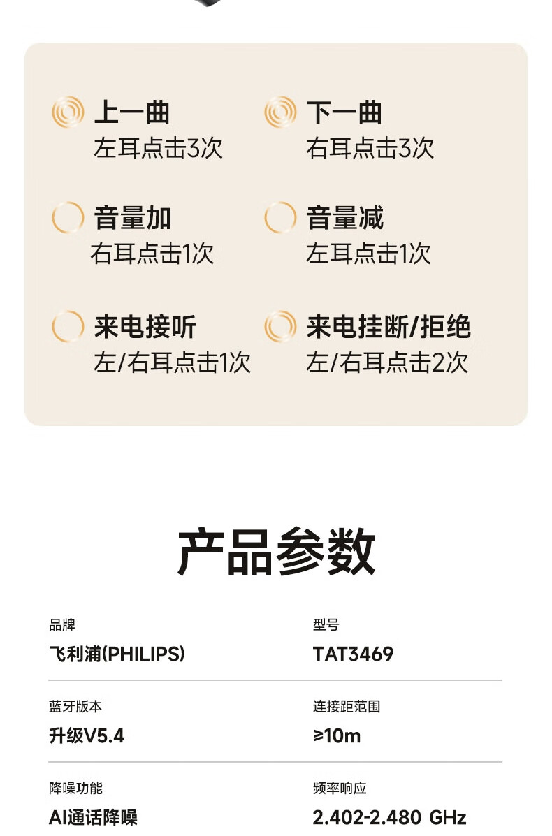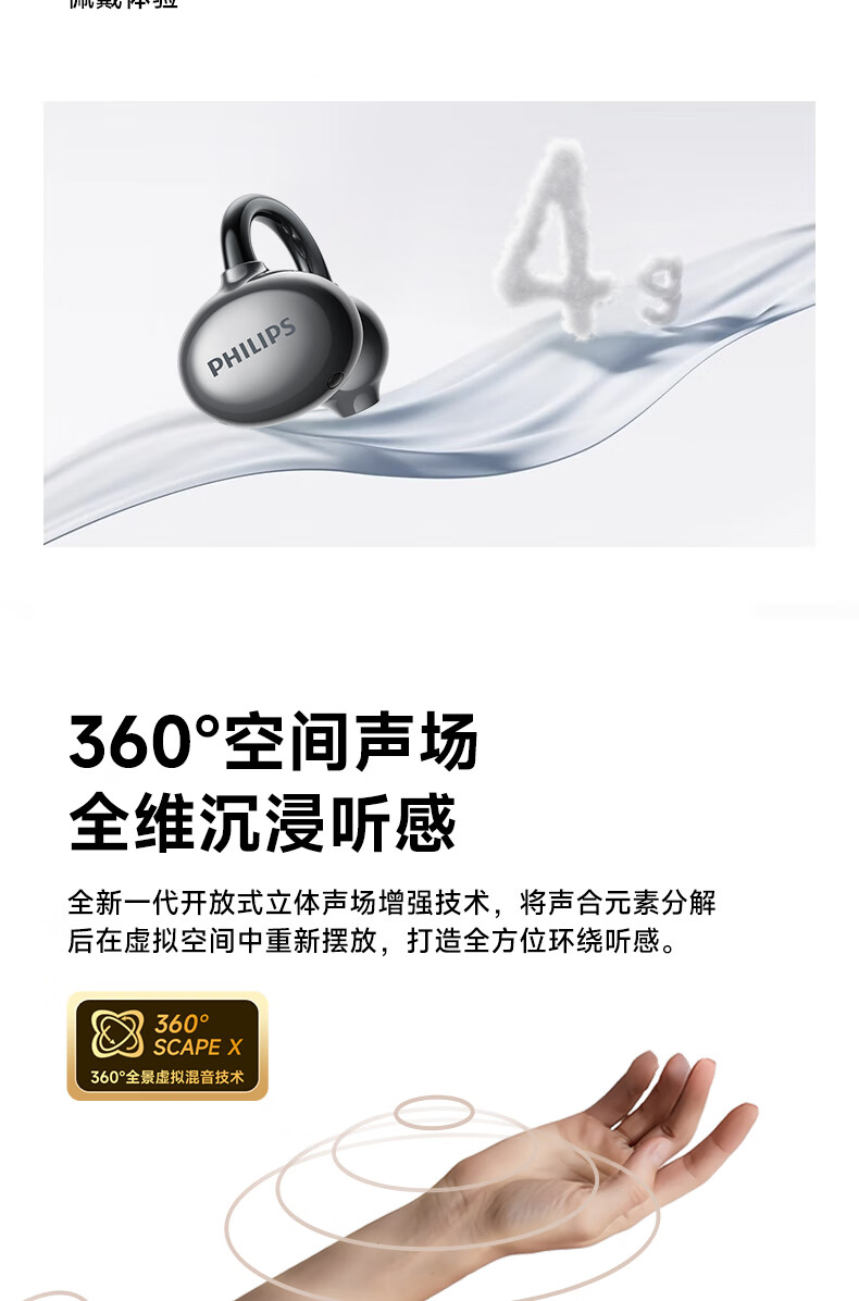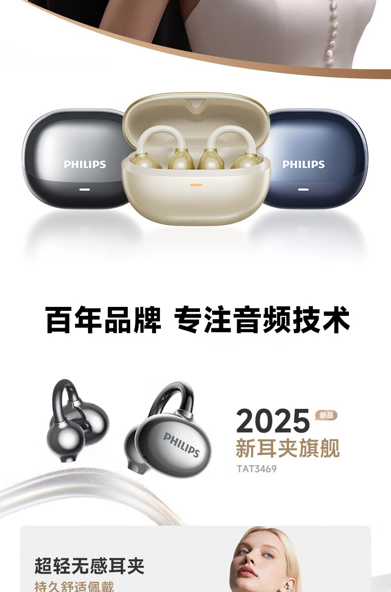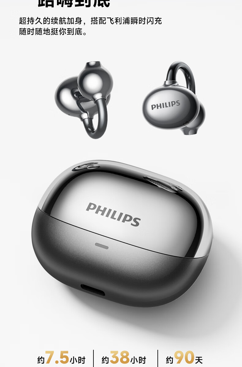 飞利浦(PHILIPS) 耳夹式蓝牙耳机 TAT3469 300mAh 蓝色(单位:副)