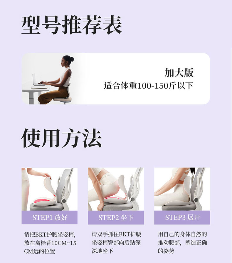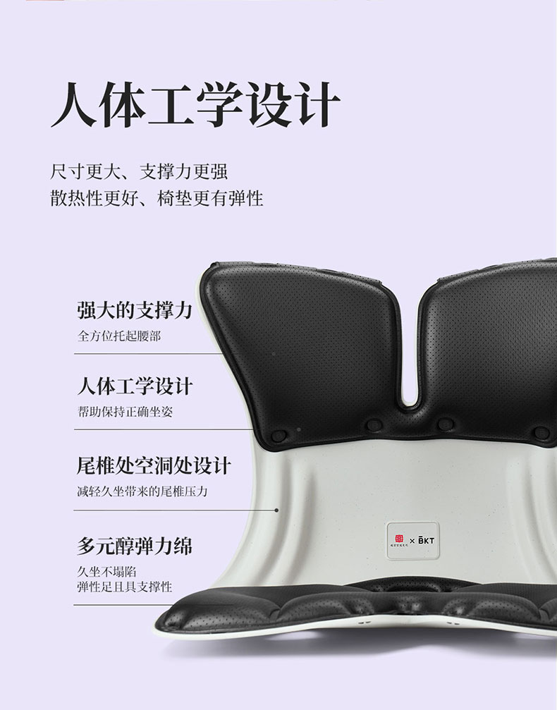 BKT 人体工学护腰坐姿椅 LP01 加大版 1.14kg 适合体重:150以下 神秘黑(单位:个)