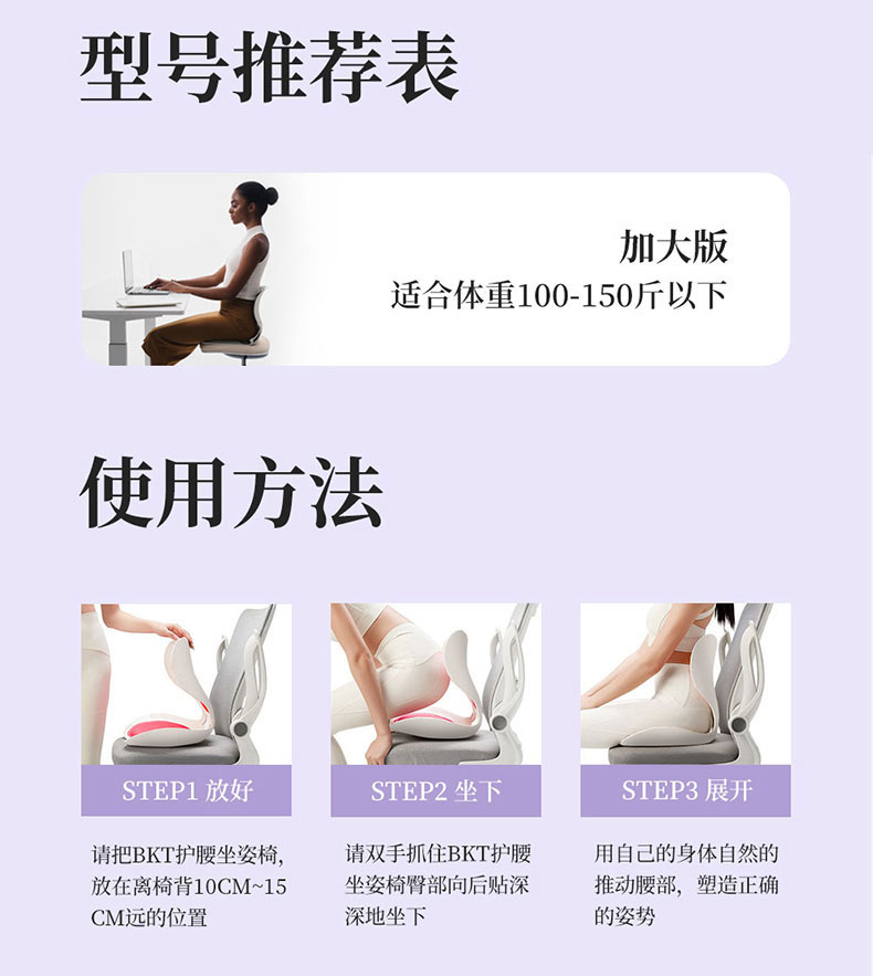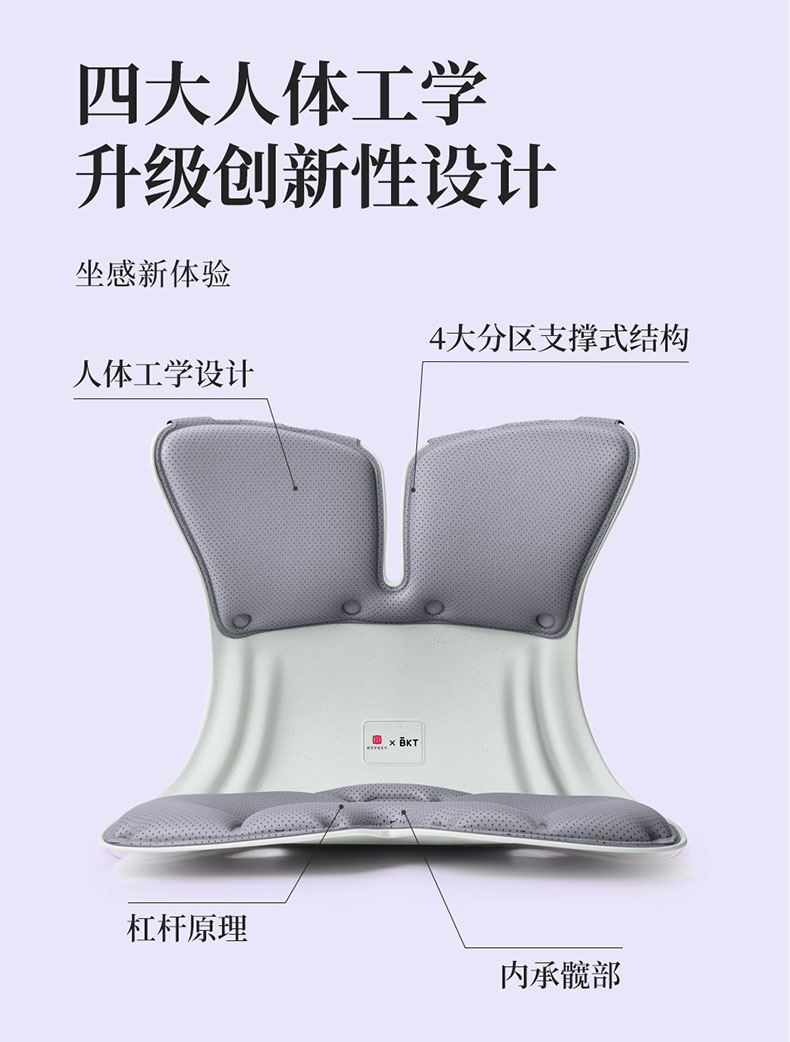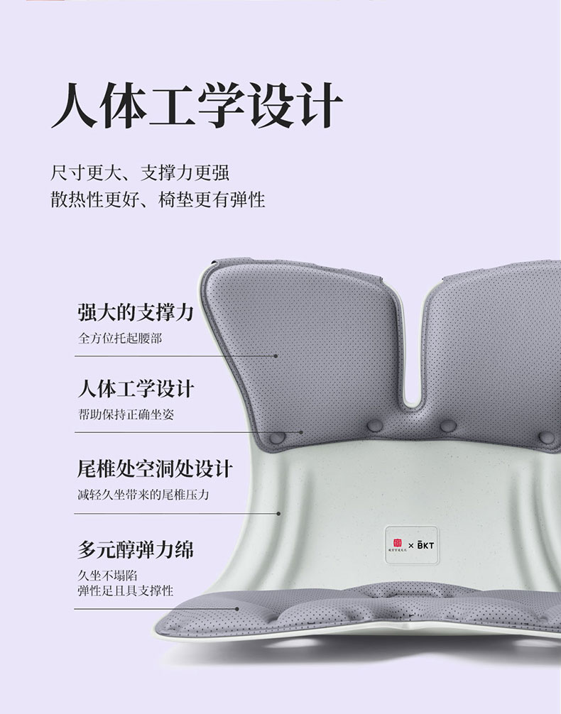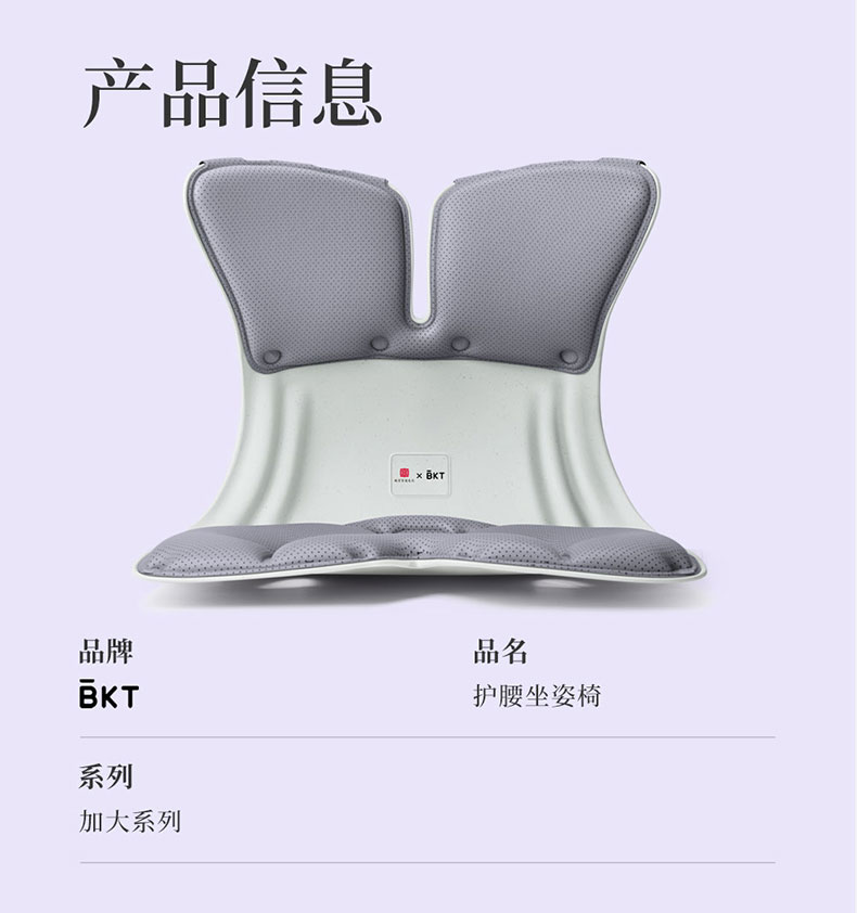 BKT 人体工学护腰坐姿椅 LP02 加大版 1.14kg 适合体重:150以下 气质灰(单位:个)
