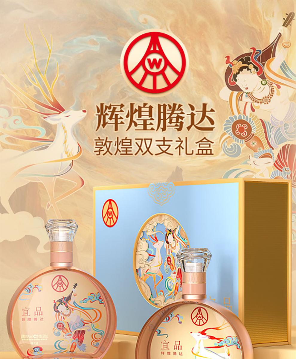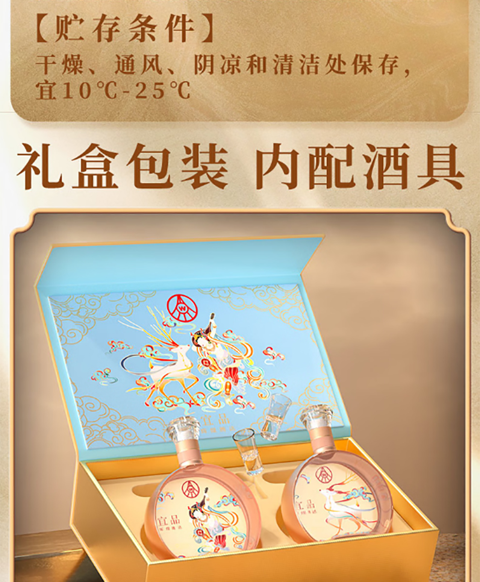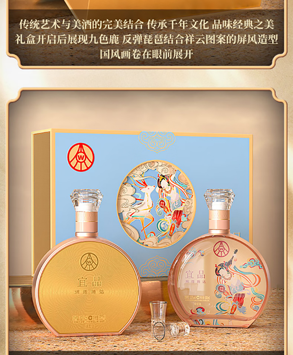 五粮液 敦煌仙女图 敦煌双支礼盒 52%vol 500mL 2瓶 蓝色(单位:套)