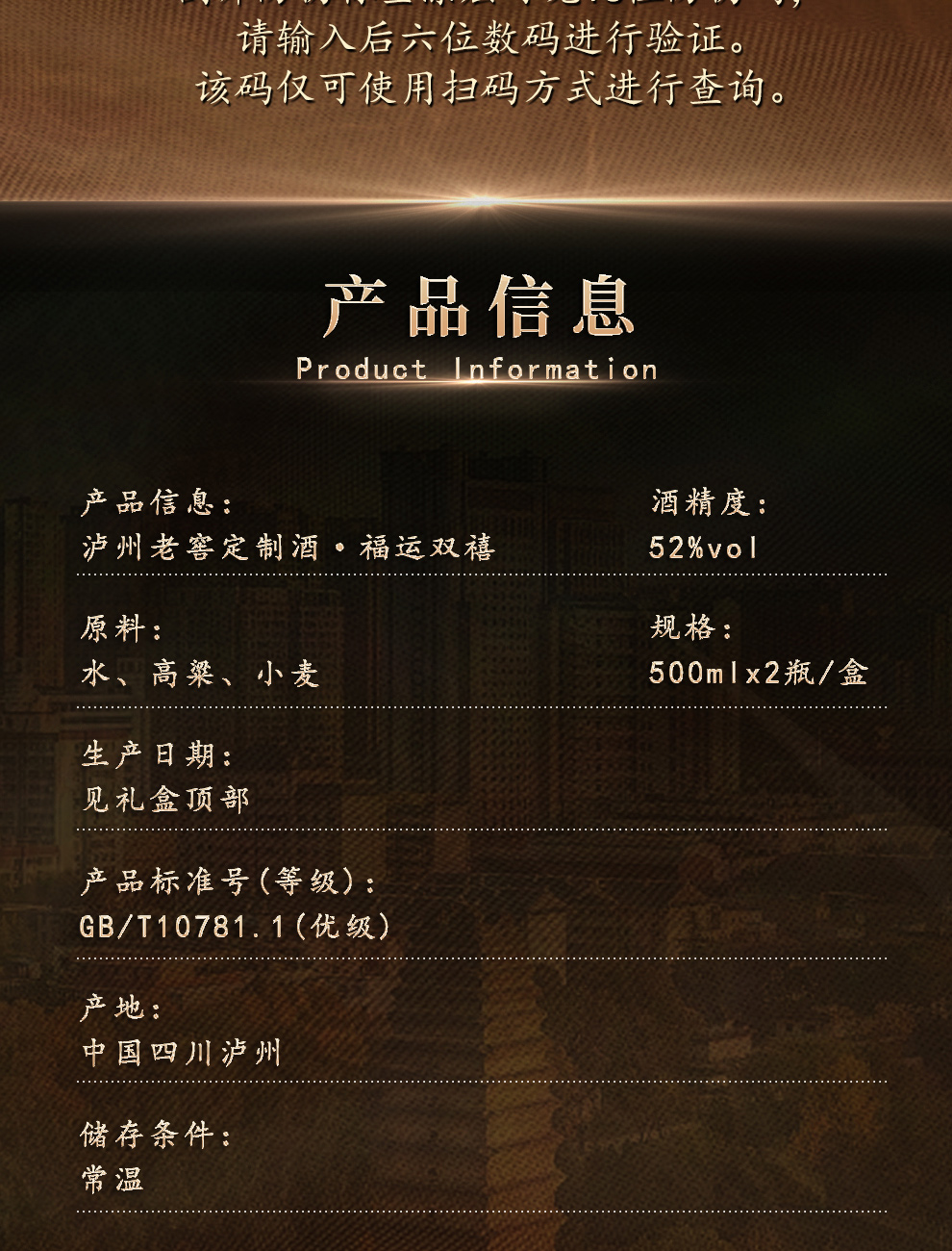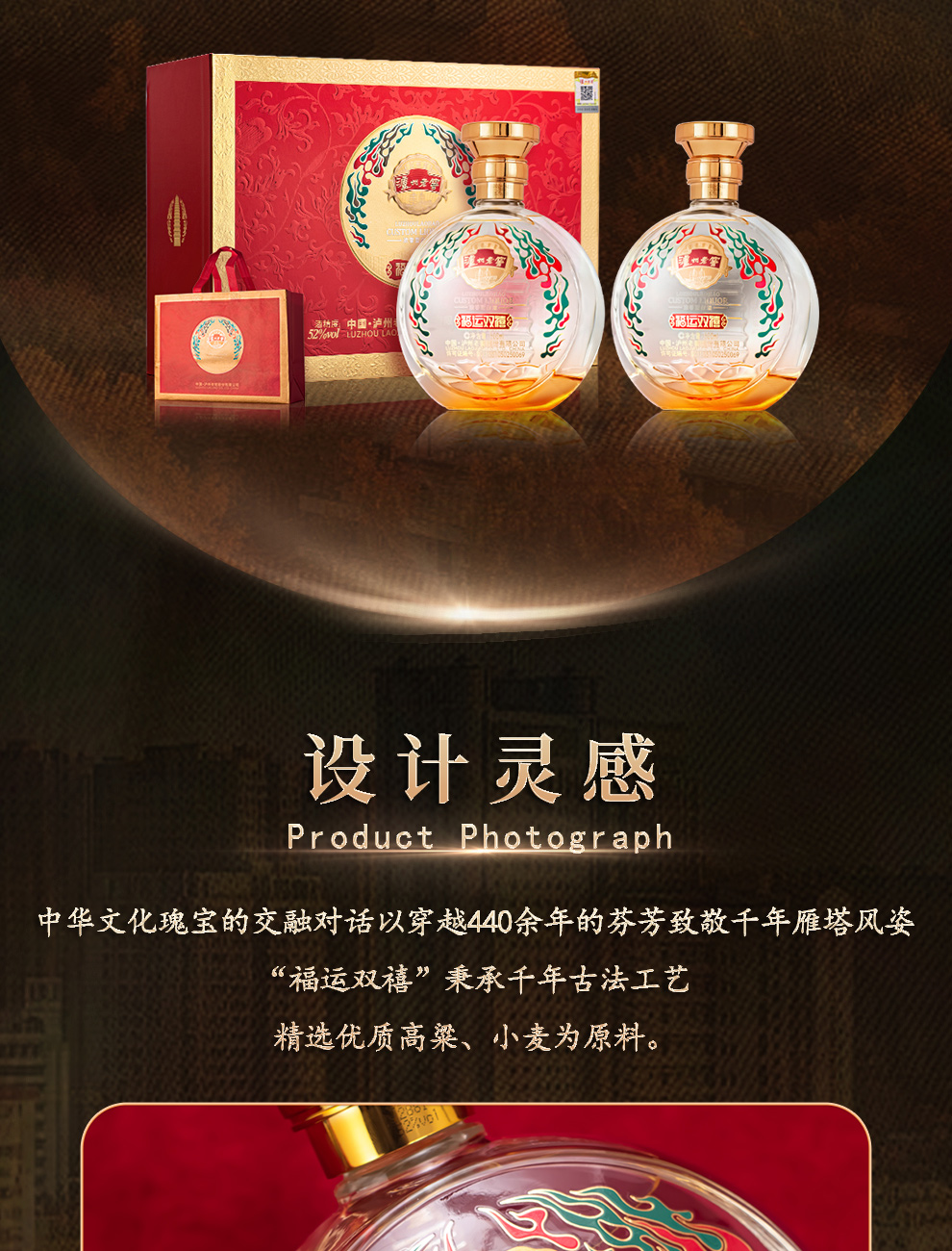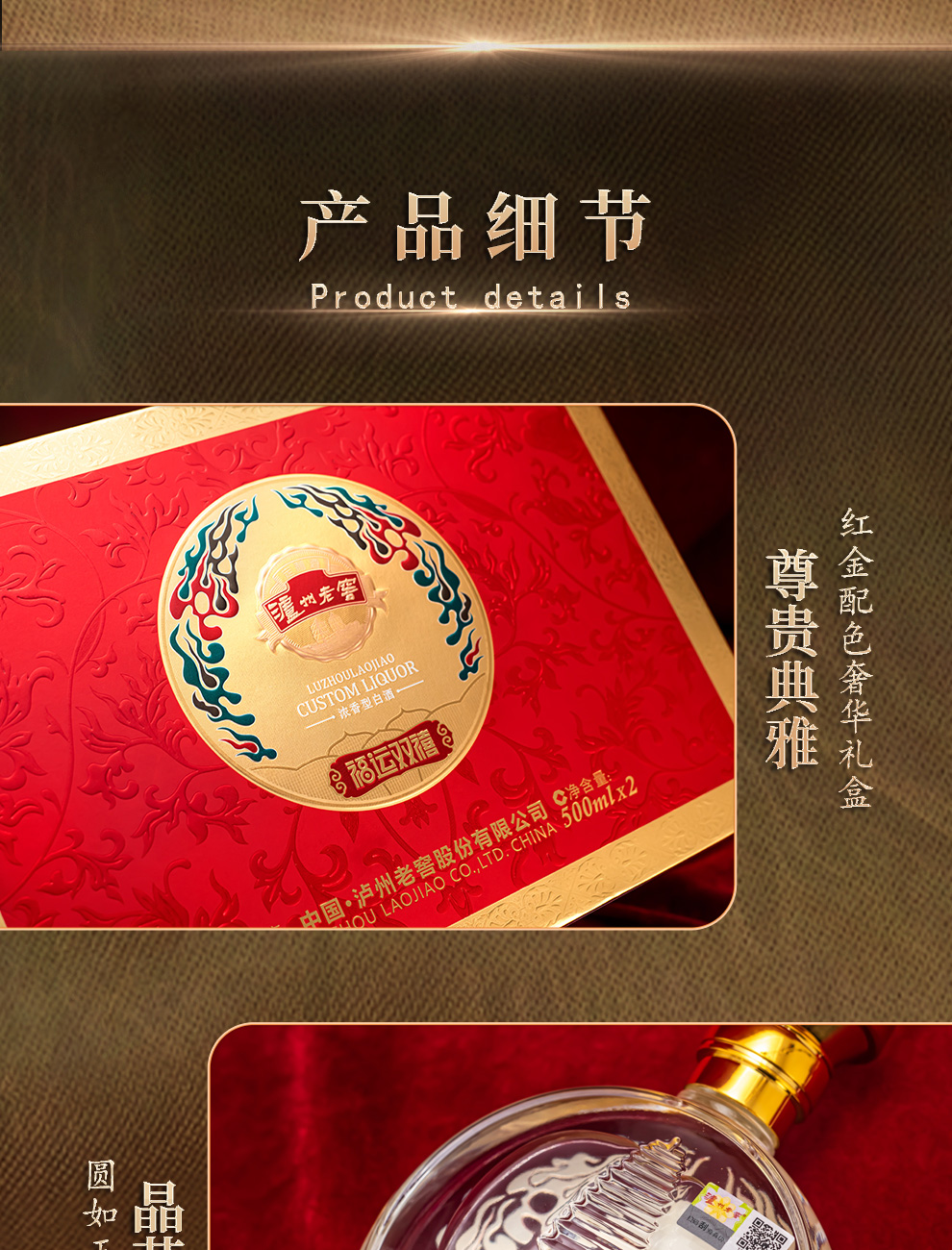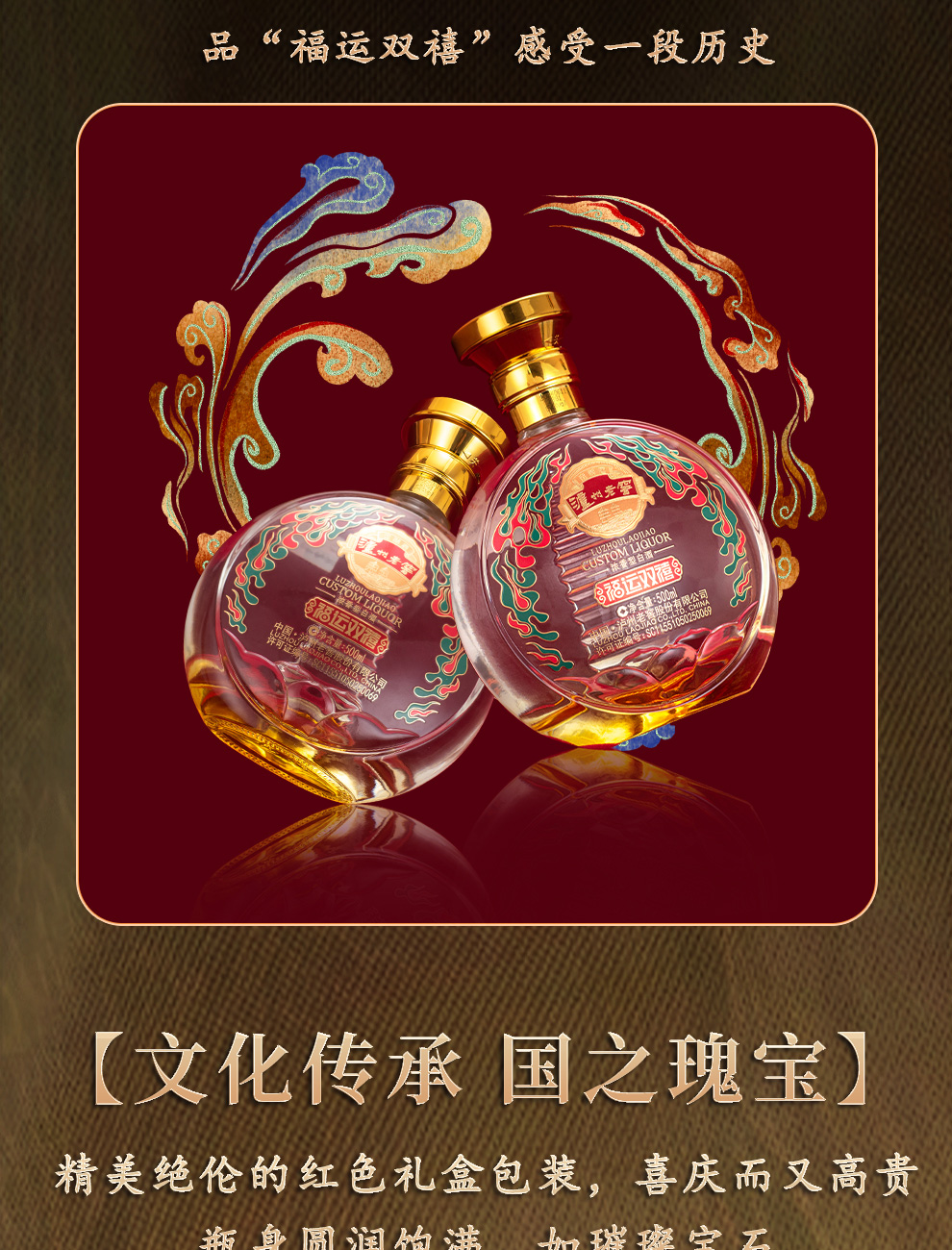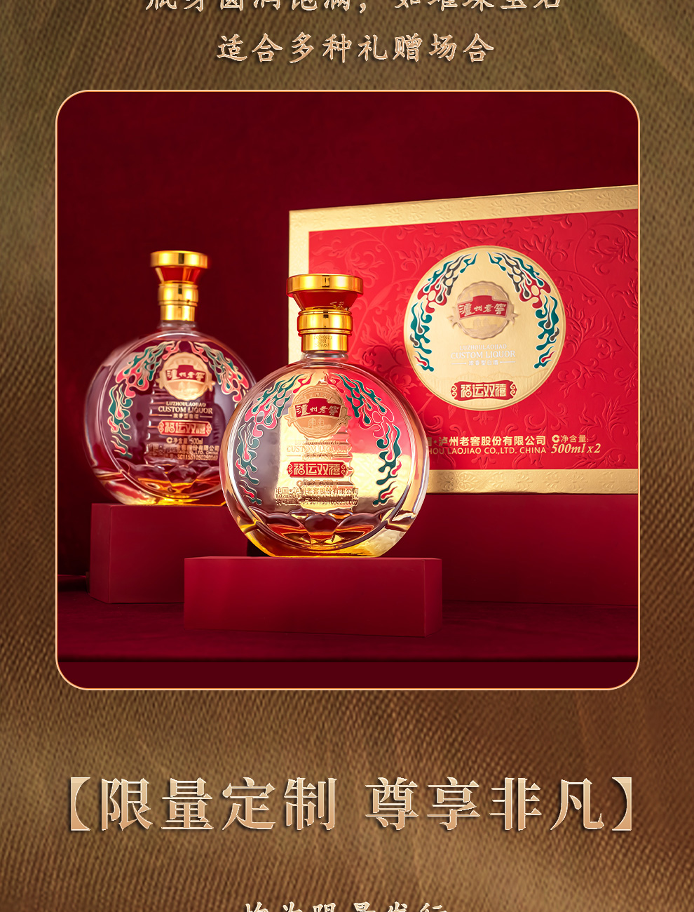 泸州老窖 浓香型白酒 福运双喜 52度 500mL 2瓶 红色(单位:套)