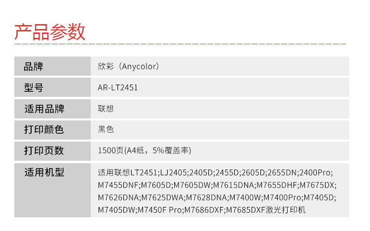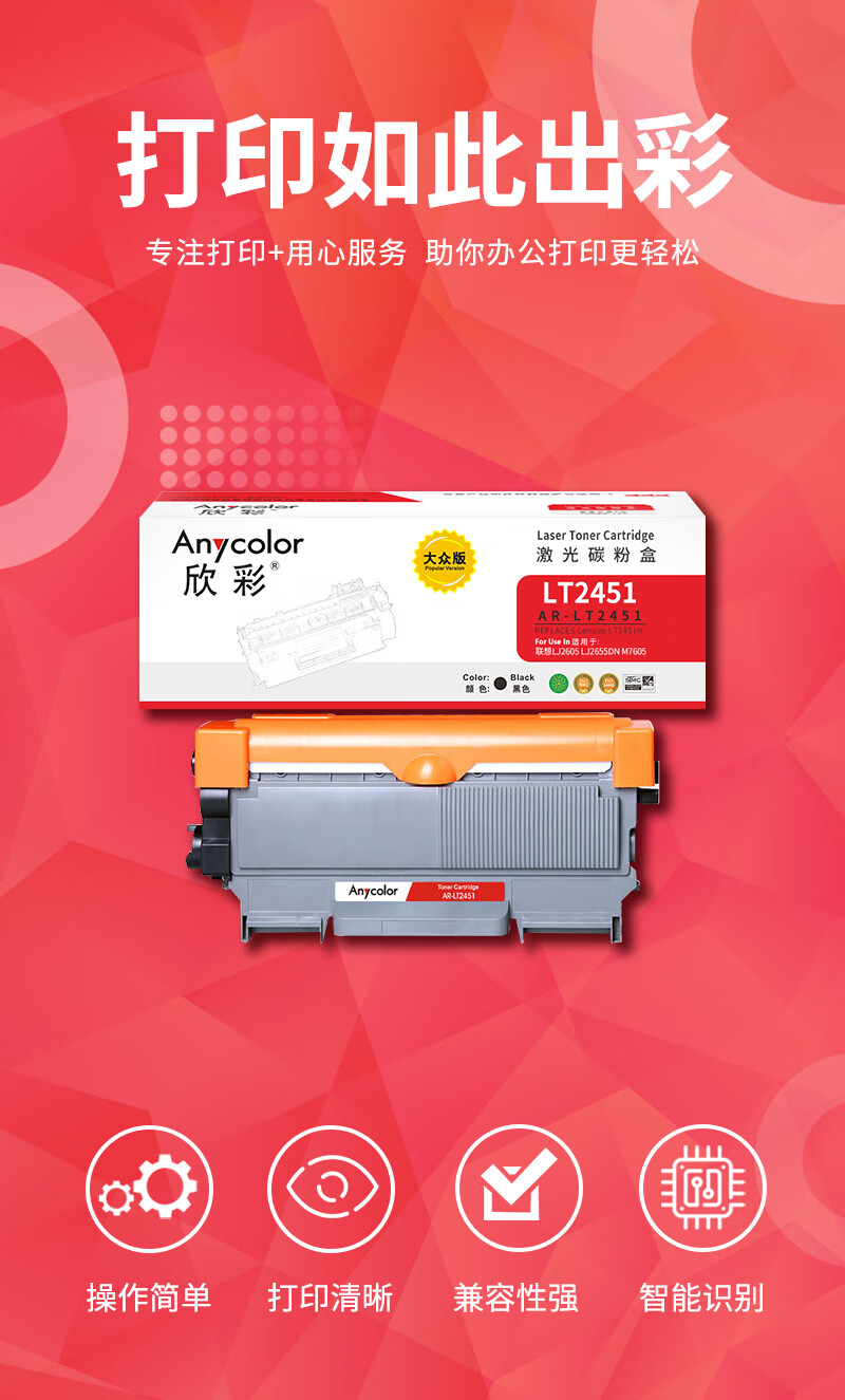 欣彩 粉盒 大众版 AR-LT2451 适用联想LT2451 LJ2405 2405D 2455D 黑色(单位:支)