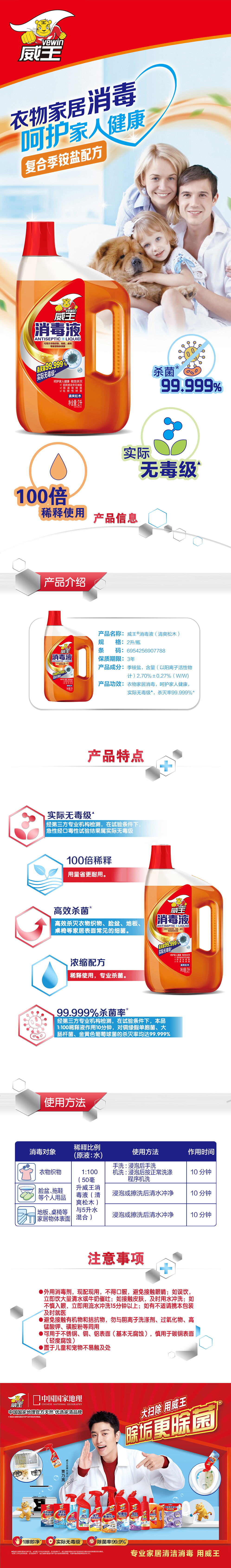威王(vewin) 衣物地板多用途 消毒液 2L 玫瑰金(单位:瓶)