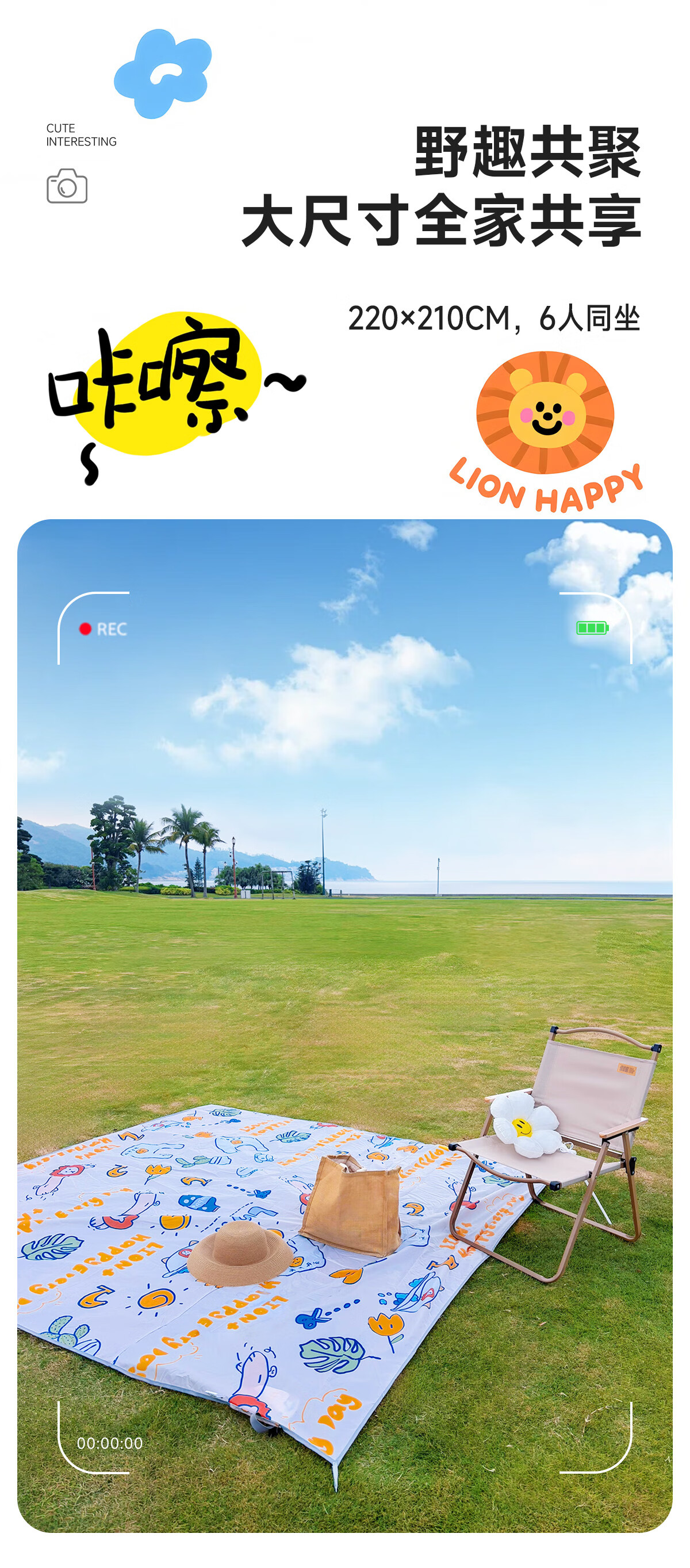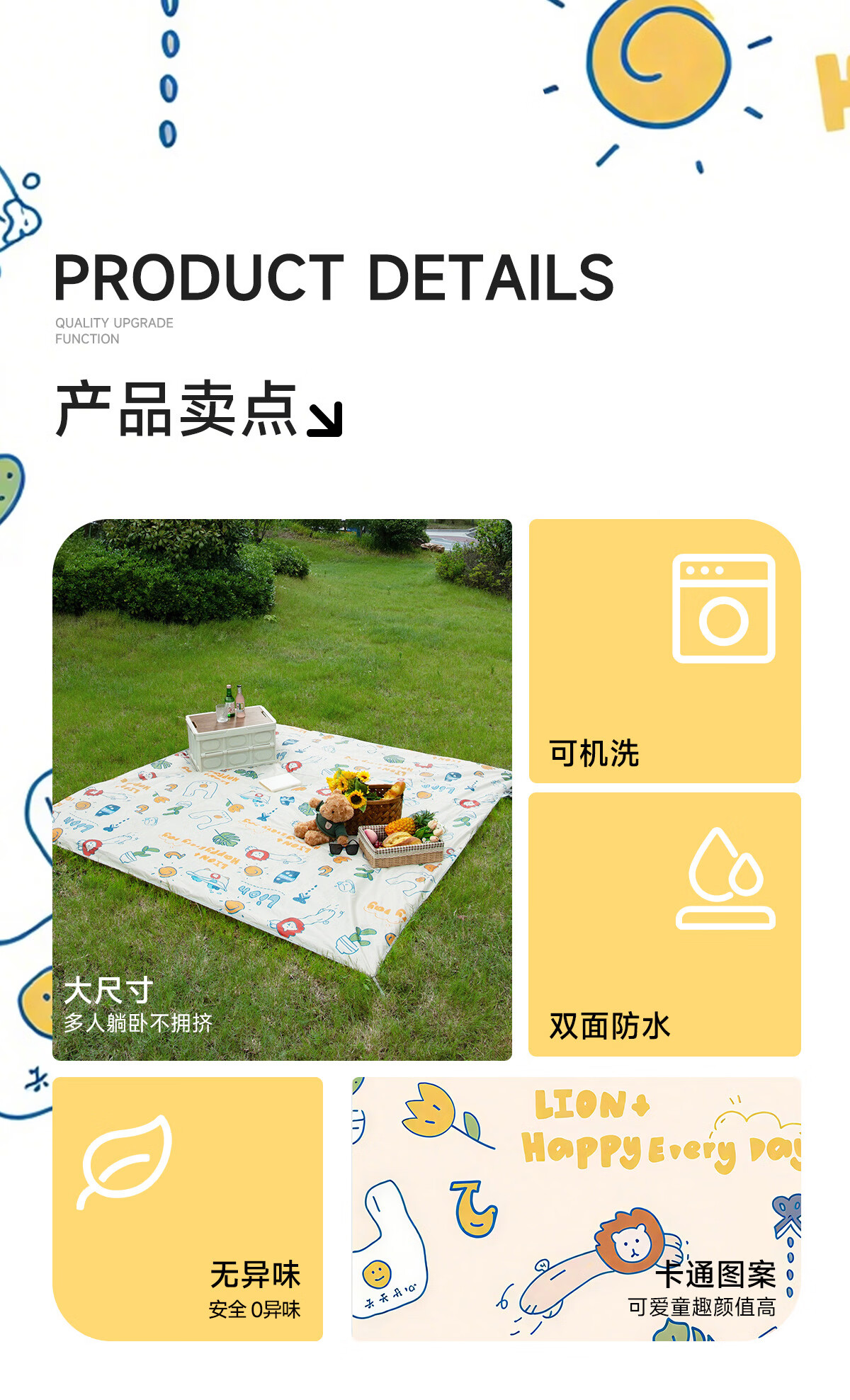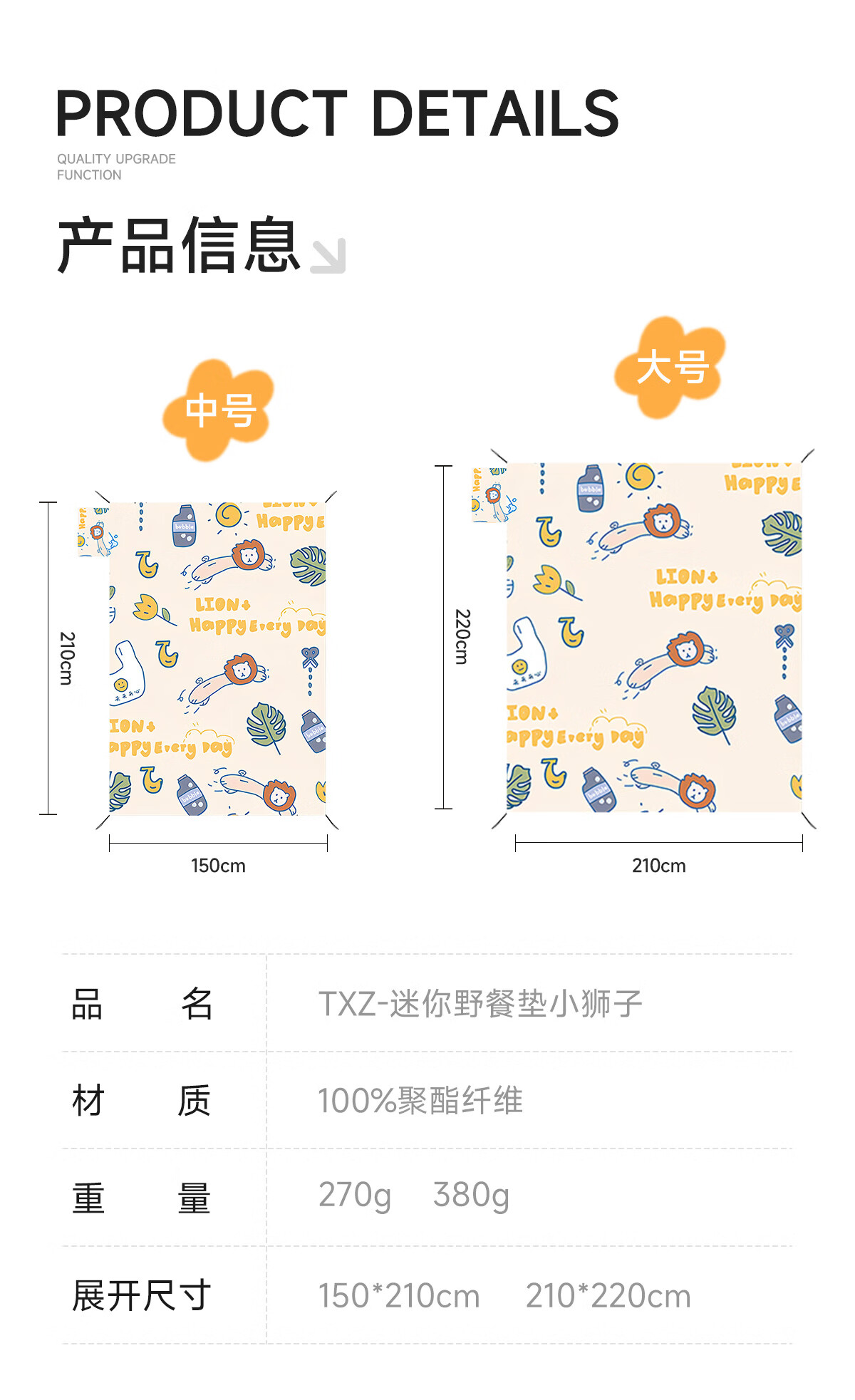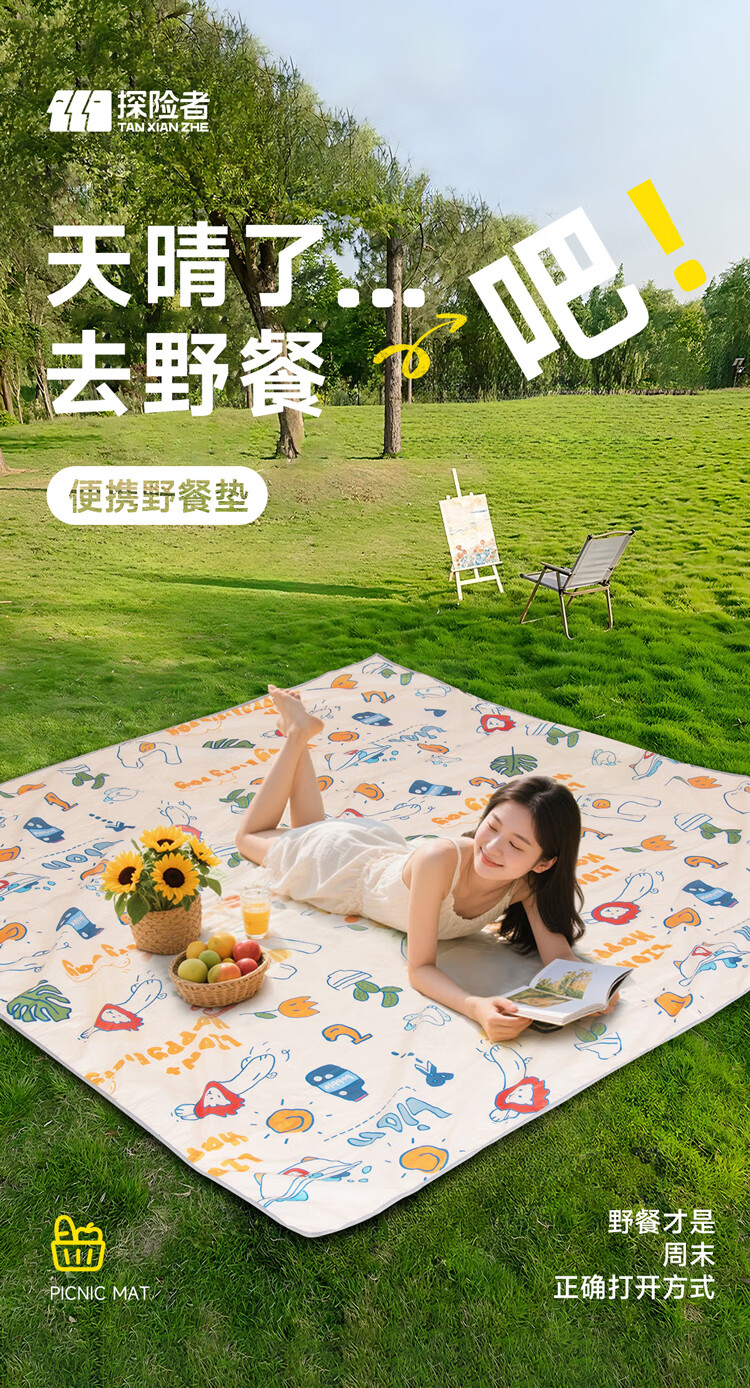 探险者(TAN XIAN ZHE) 野餐垫加厚防潮小狮子图案 TXZ-YCD-150 150*200cm 花色 花色(单位:张)