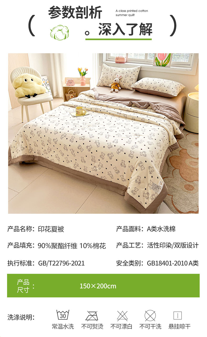 罗曼记忆 五星级酒店同款-A类超柔亲肤棉花夏被 JTB301 尺寸:150*200cm 小熊(单位:条)
