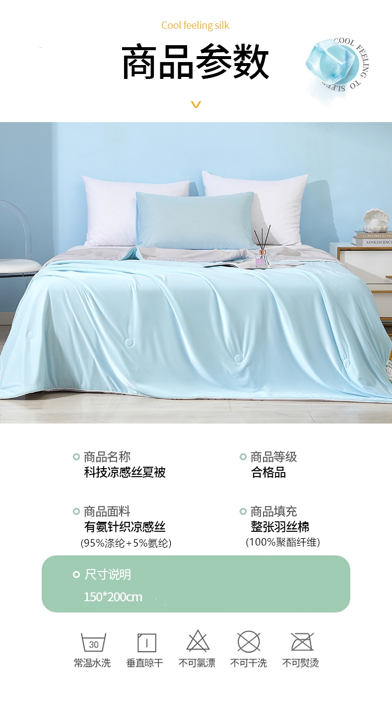 罗曼记忆 五星级酒店同款抗菌可水洗科技凉感丝夏被空调被 JTB302 150*200cm 蓝色(单位:条)