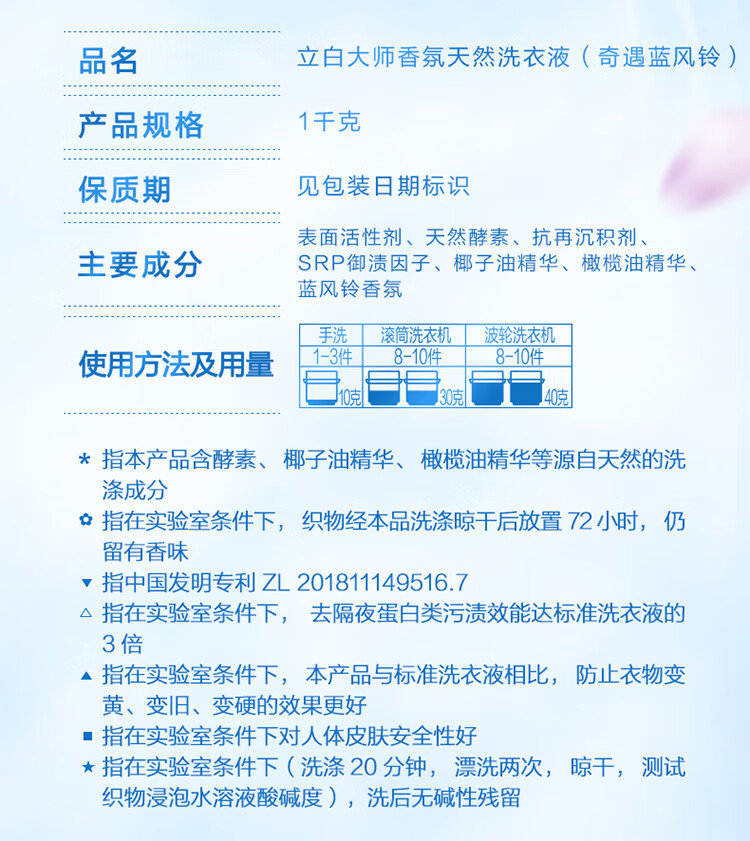 立白 大师香氛天然洗衣液奇遇蓝风铃1kg 6920174773897(单位:瓶) 粉色