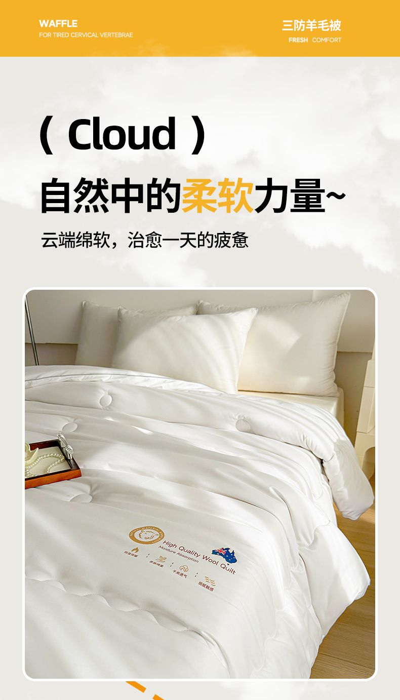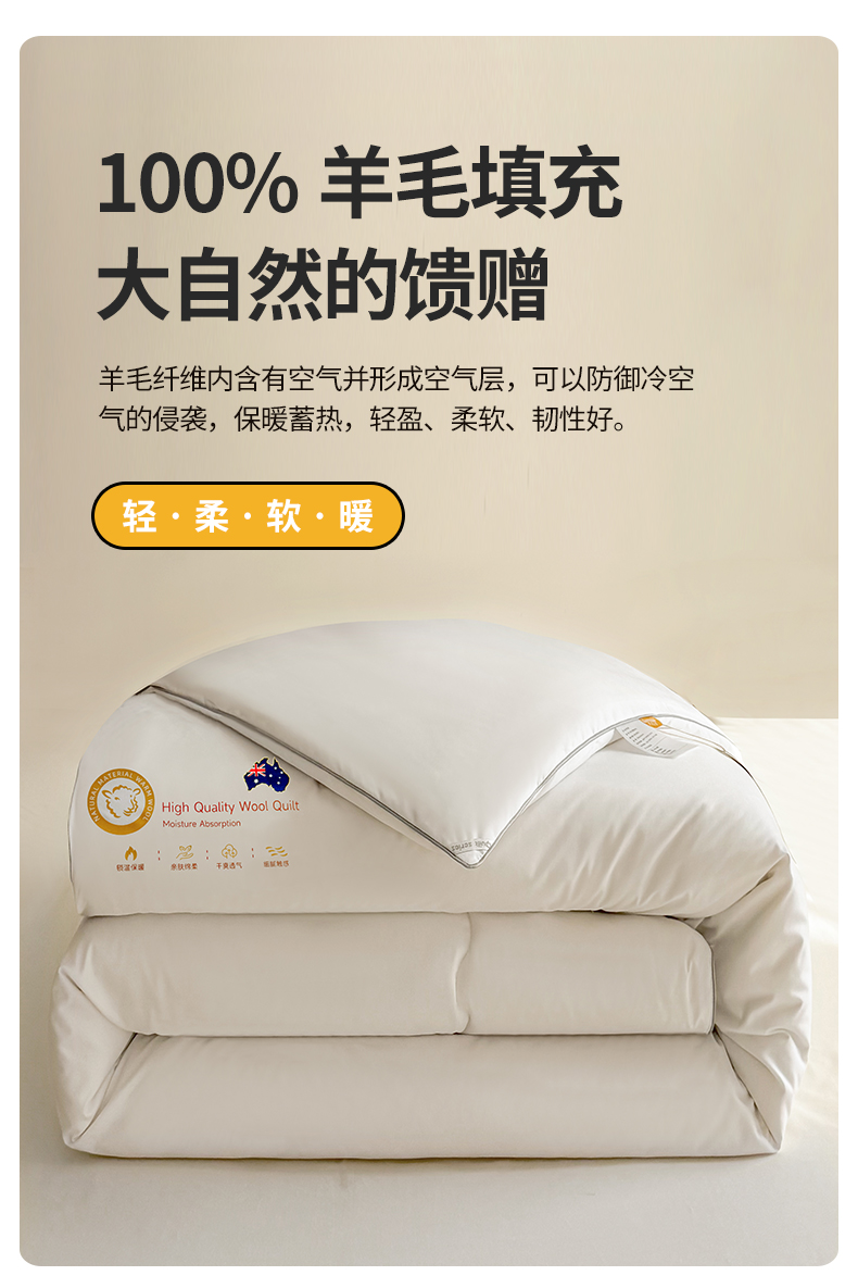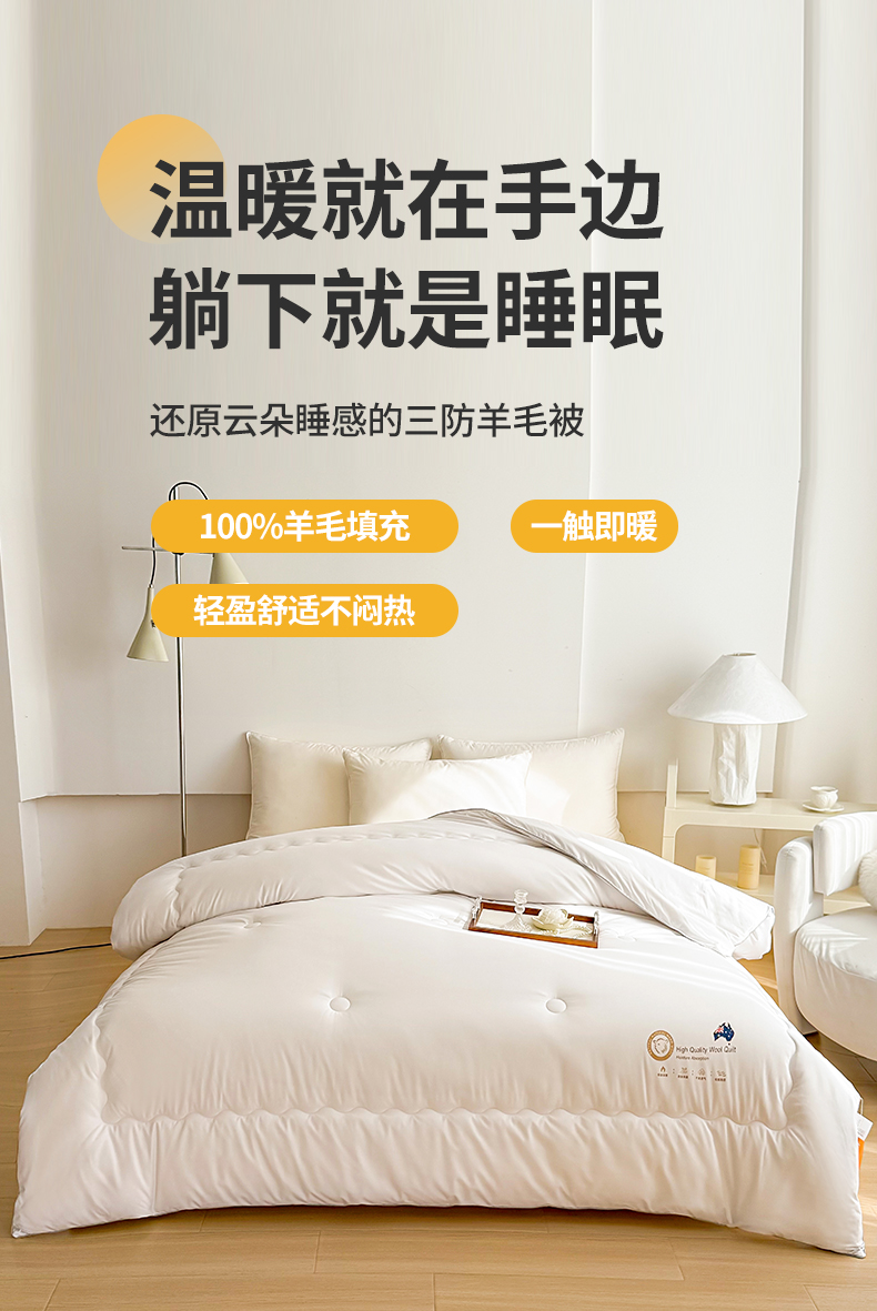 罗曼记忆 五星级酒店同款-臻品羊毛被100%羊毛填充深睡控温被 LM1502 200*230cm 白色(单位:条)