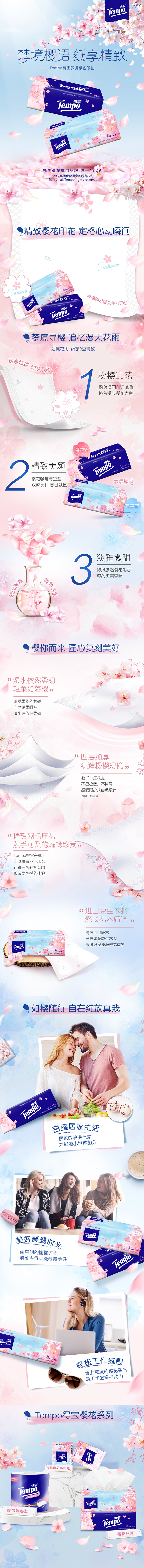 得宝(TEMPO) 抽纸 樱花味 4层90抽12包 混色(单位:组)