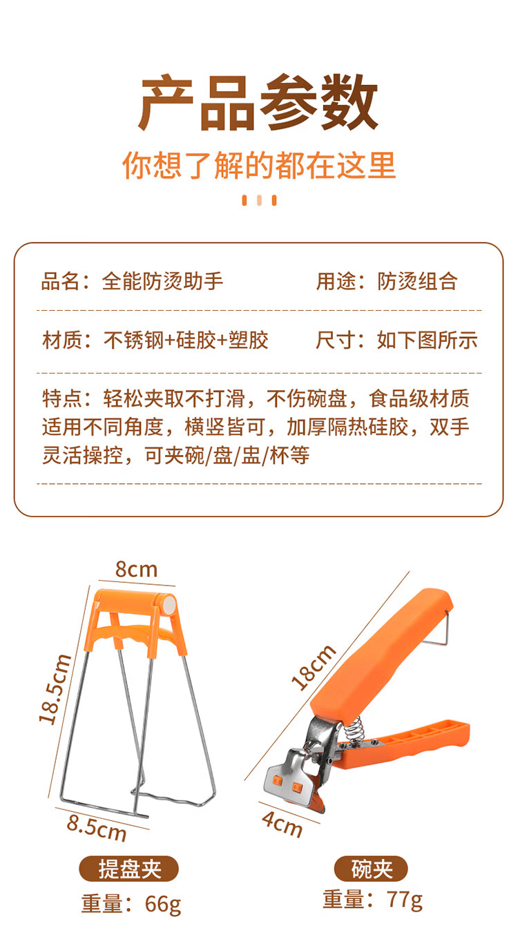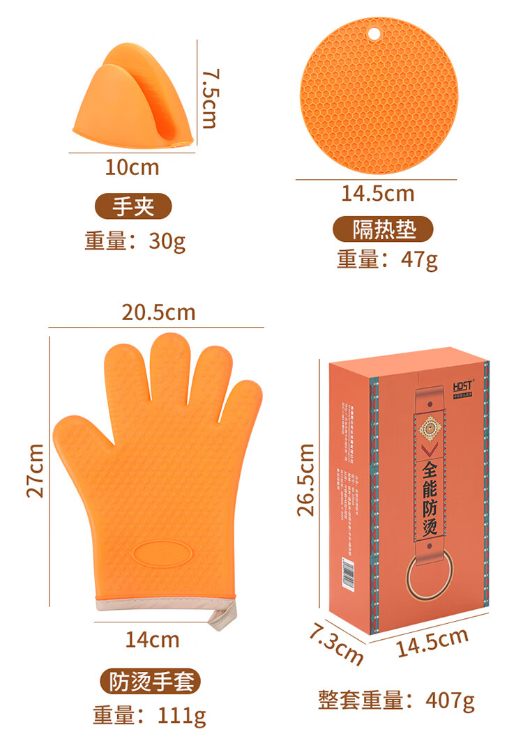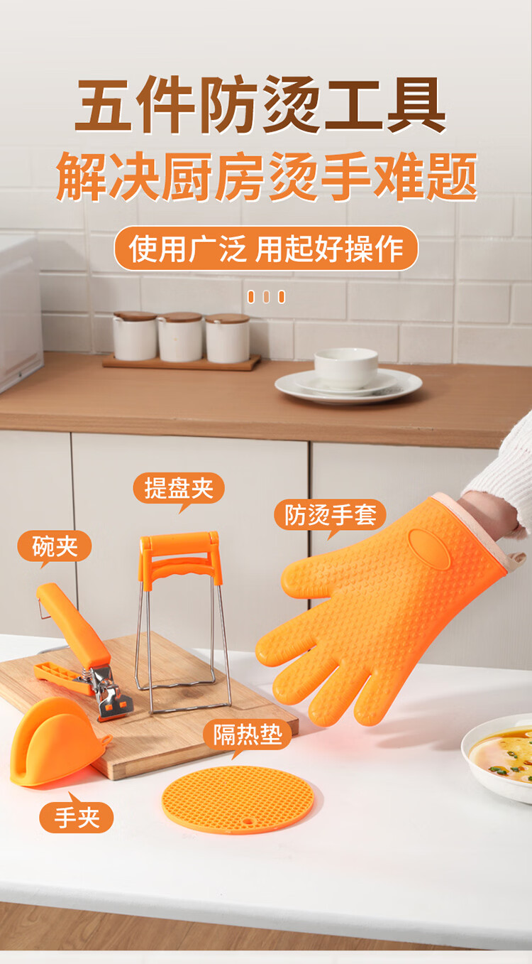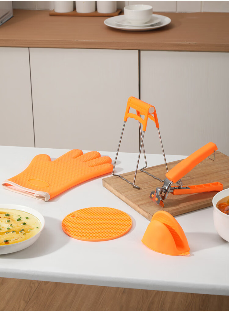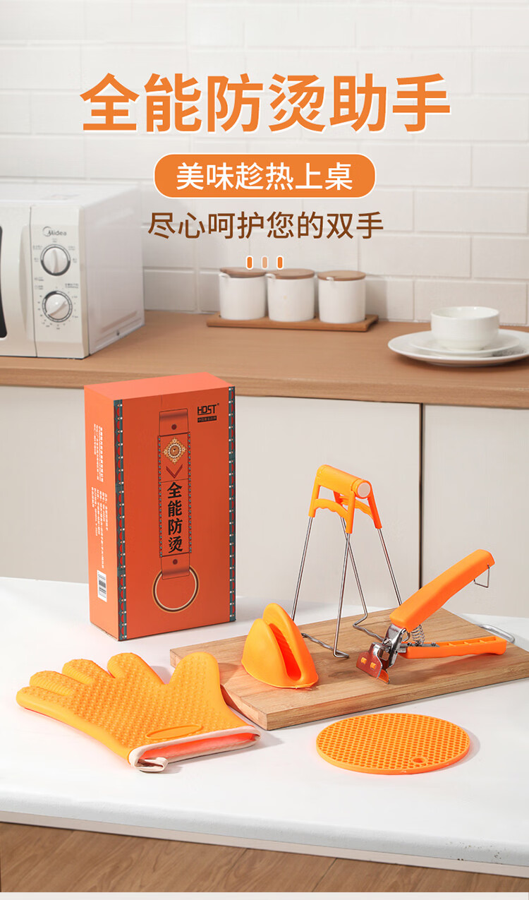 华典世通(HDST) 全能防烫助手 QN-25028 碗夹+提盘夹+防烫手套+手夹+隔热垫 橙色(单位:套)