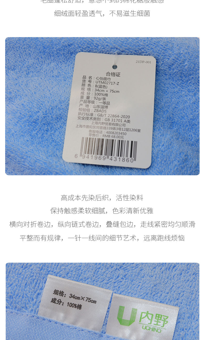 内野(UCHINO) 心怡面巾. EVA磨砂单条装 UTM02717-Z 75*34cm 粉色(单位:条)