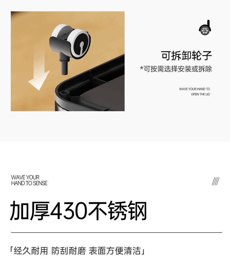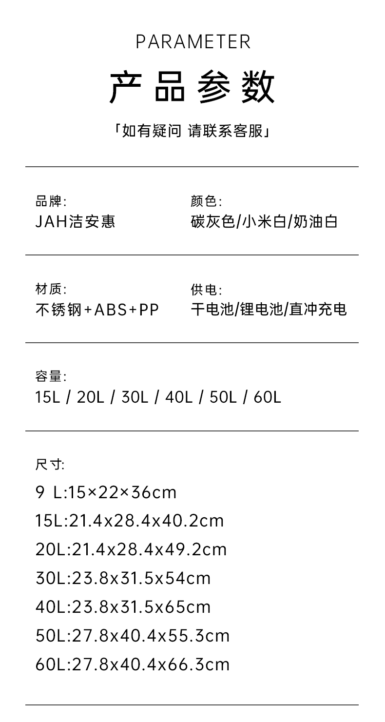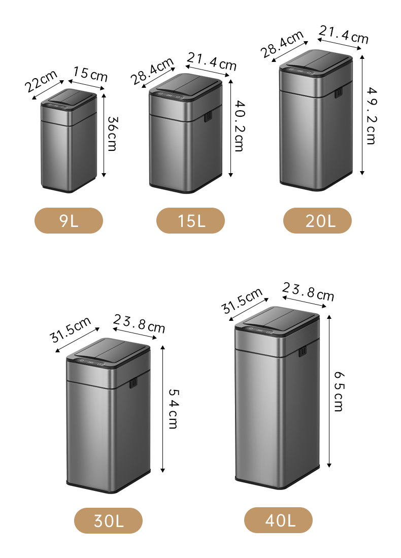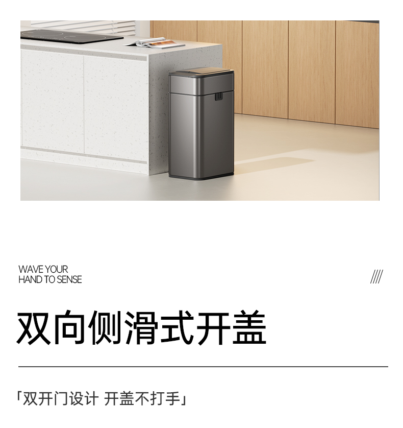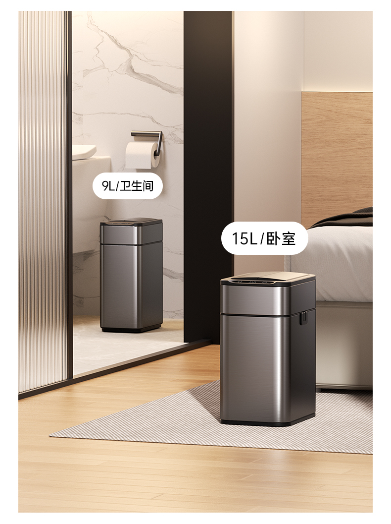 洁安惠 不锈钢自动铺袋智能垃圾桶 9817ZD 15升充电款 炭灰色(单位:台)