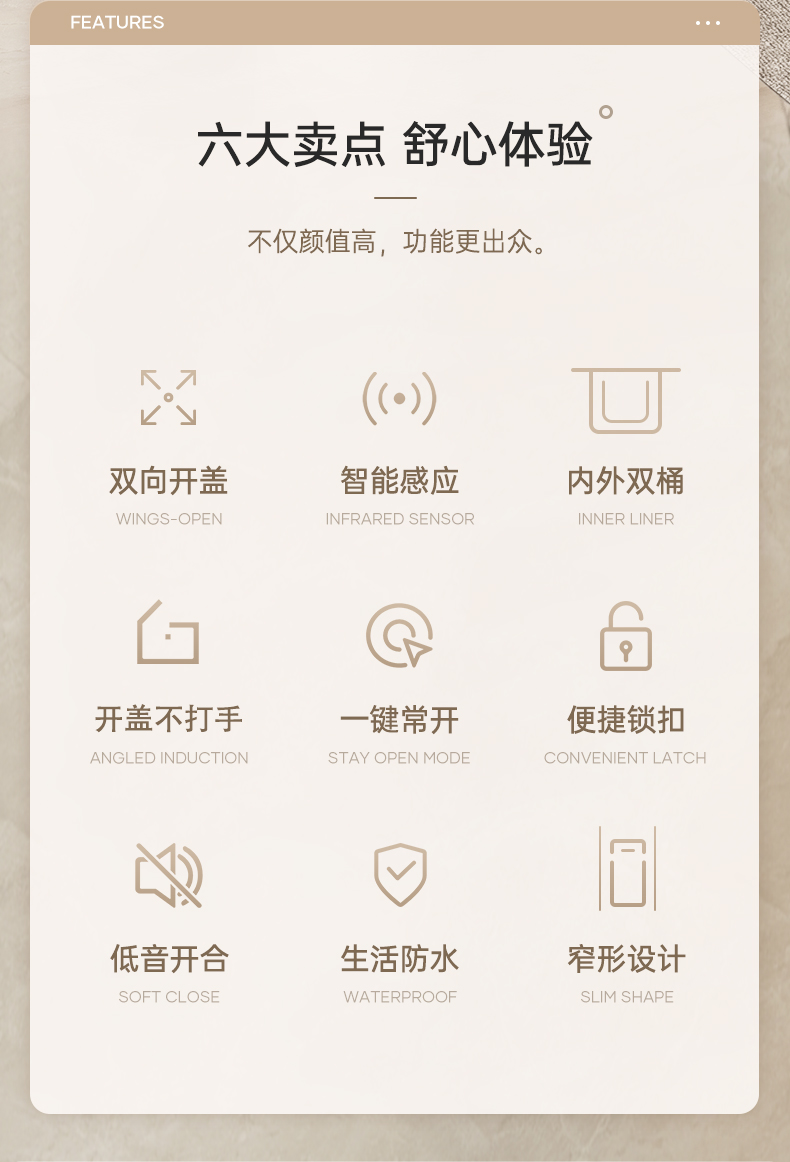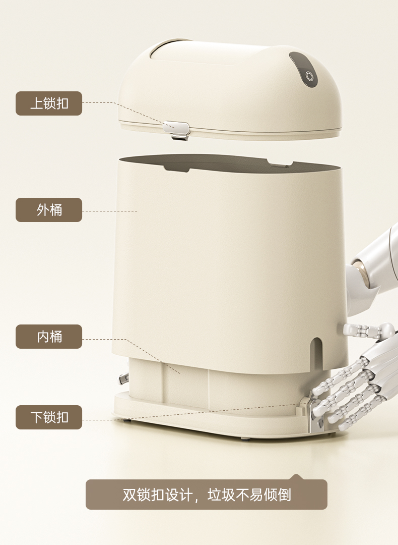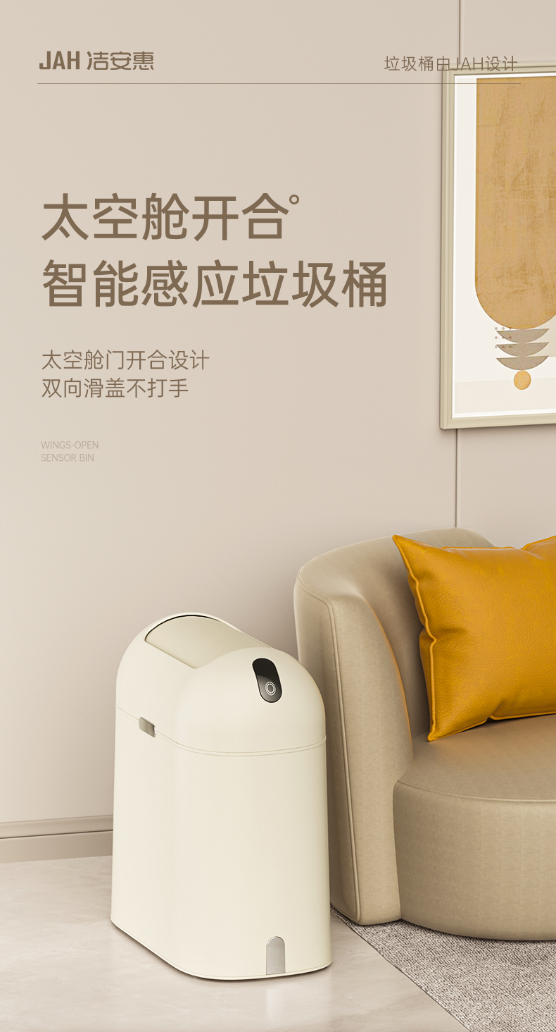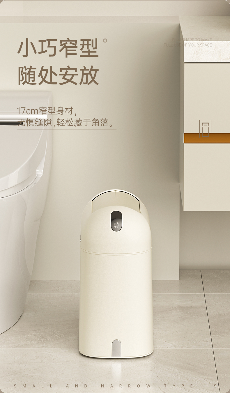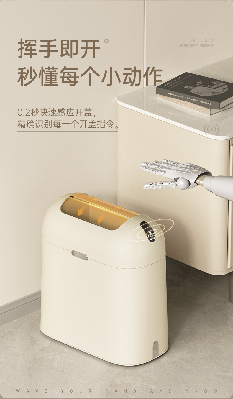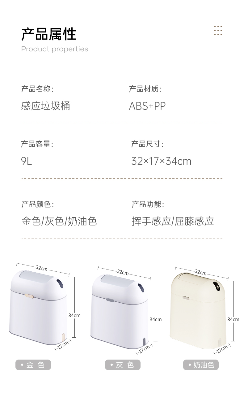 洁安惠 塑料款智能垃圾桶 6715D 9升充电款 奶油色(单位:台)