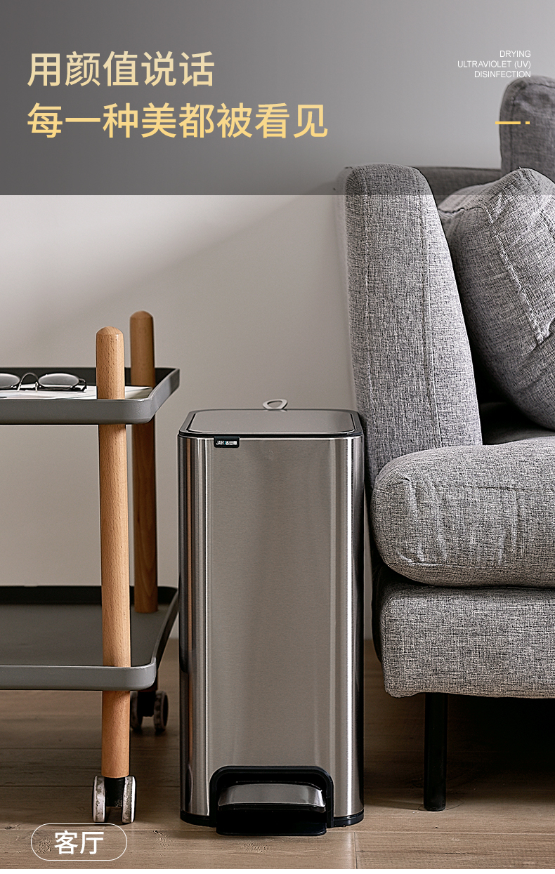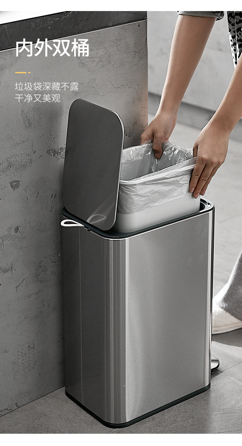 洁安惠 不锈钢垃圾桶 7611 13升脚踩 银色(单位:台)