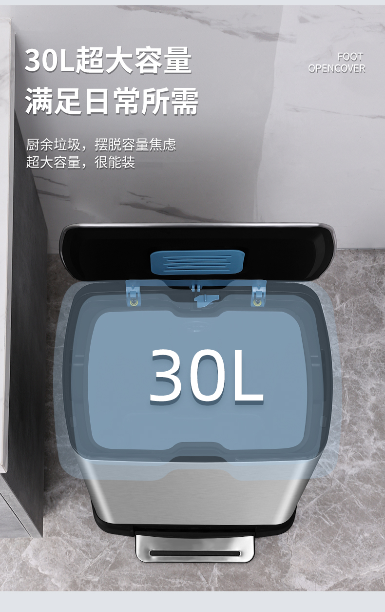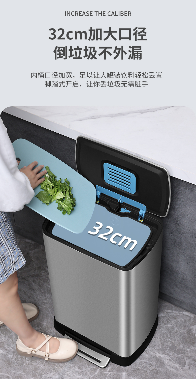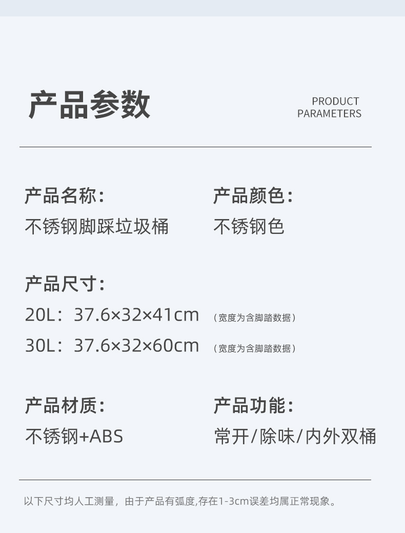 洁安惠 不锈钢脚踩垃圾桶 7111 20升脚踩 银色(单位:台)