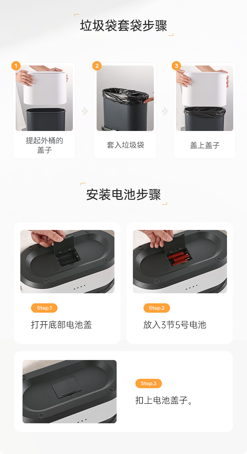 洁安惠 9升自动铺袋智能垃圾桶 301D 充电款 白色(单位:台)