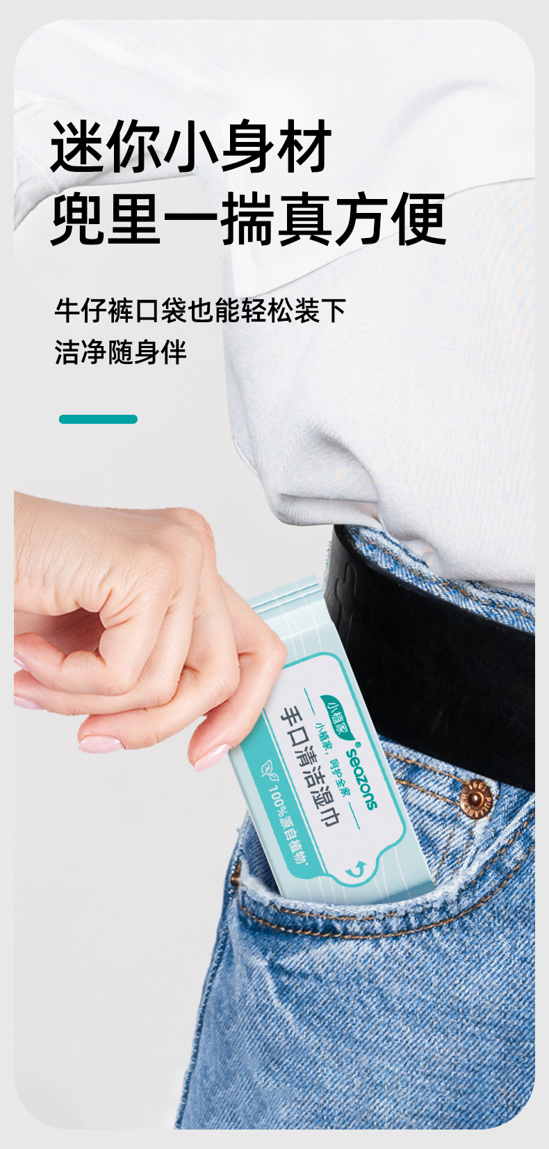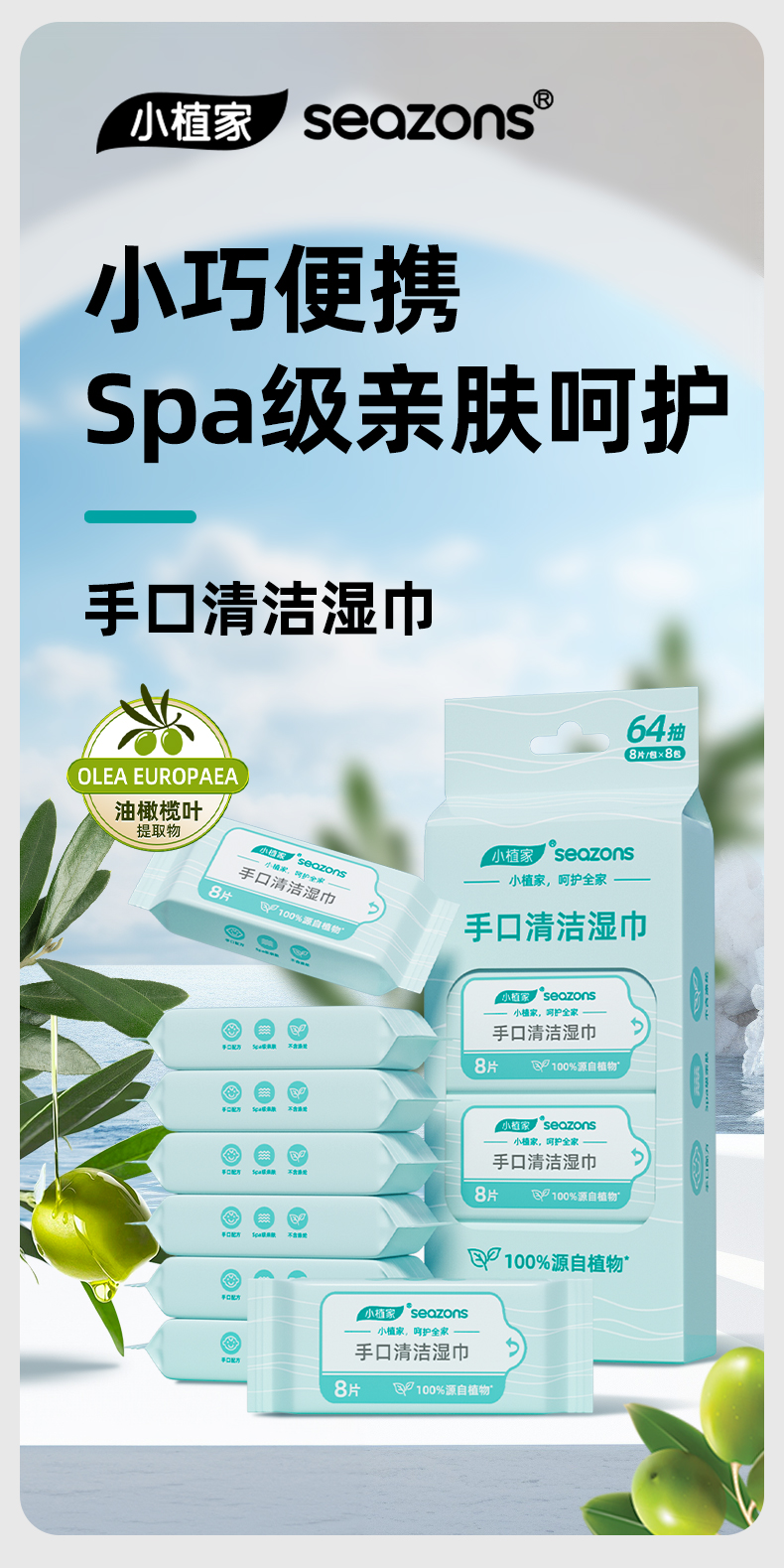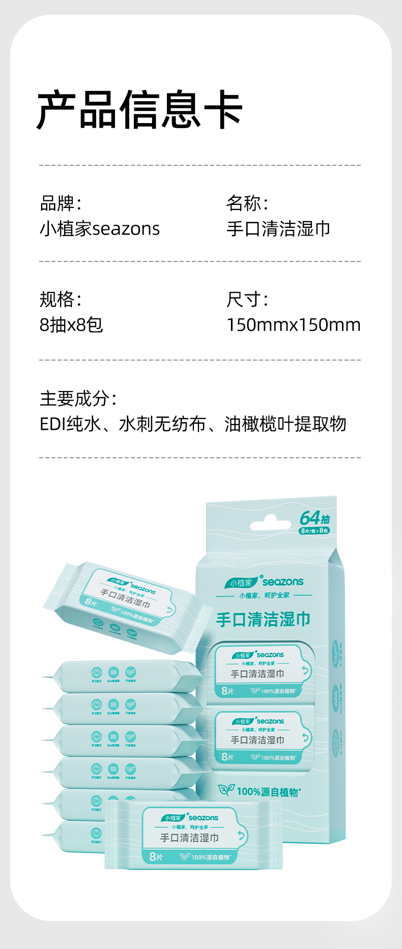 小植家 手口清洁湿巾套装 BX008A*8 8片*8包/提 白色(单位:提)