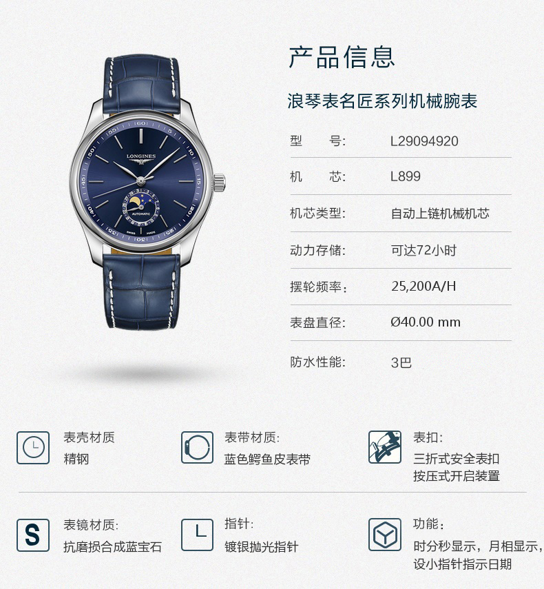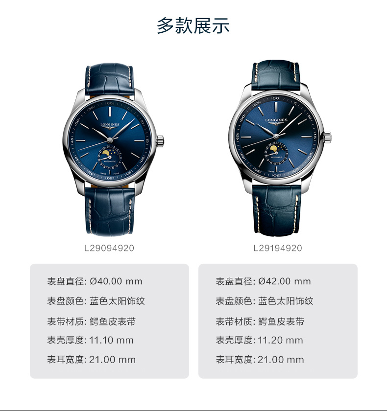 浪琴Longines 名匠系列机械男士腕表 L2.919.4.92.0(单位:块) 幻影蓝