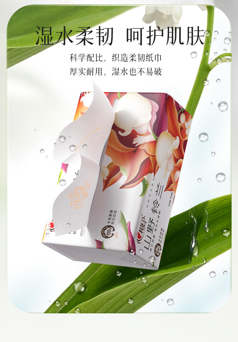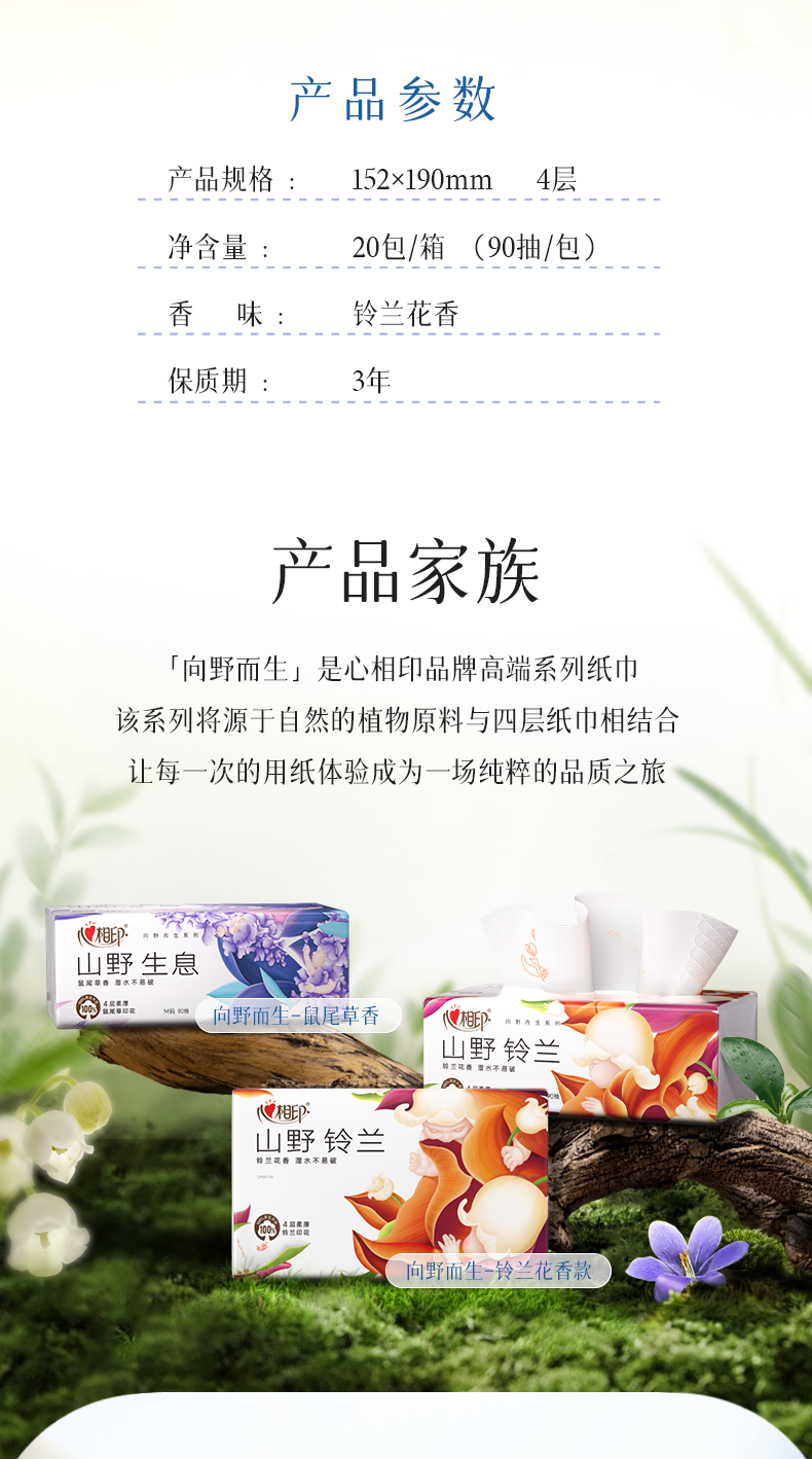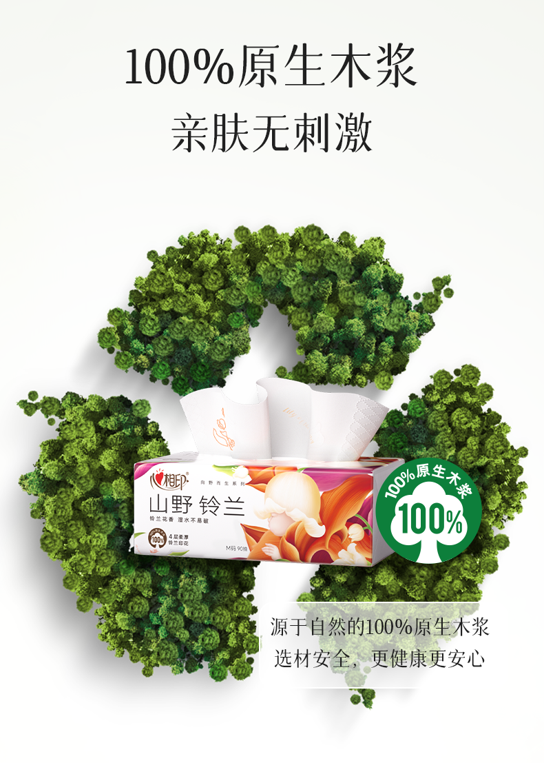 心相印 向野而生90抽四层塑装面巾纸(铃兰印花) DT41090 20包*1箱 白色(单位:箱)