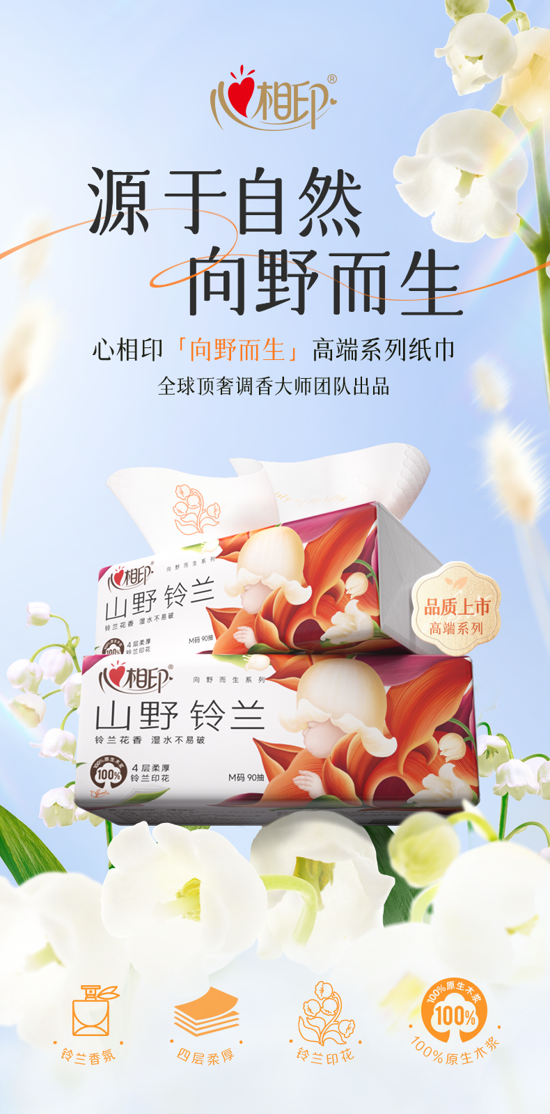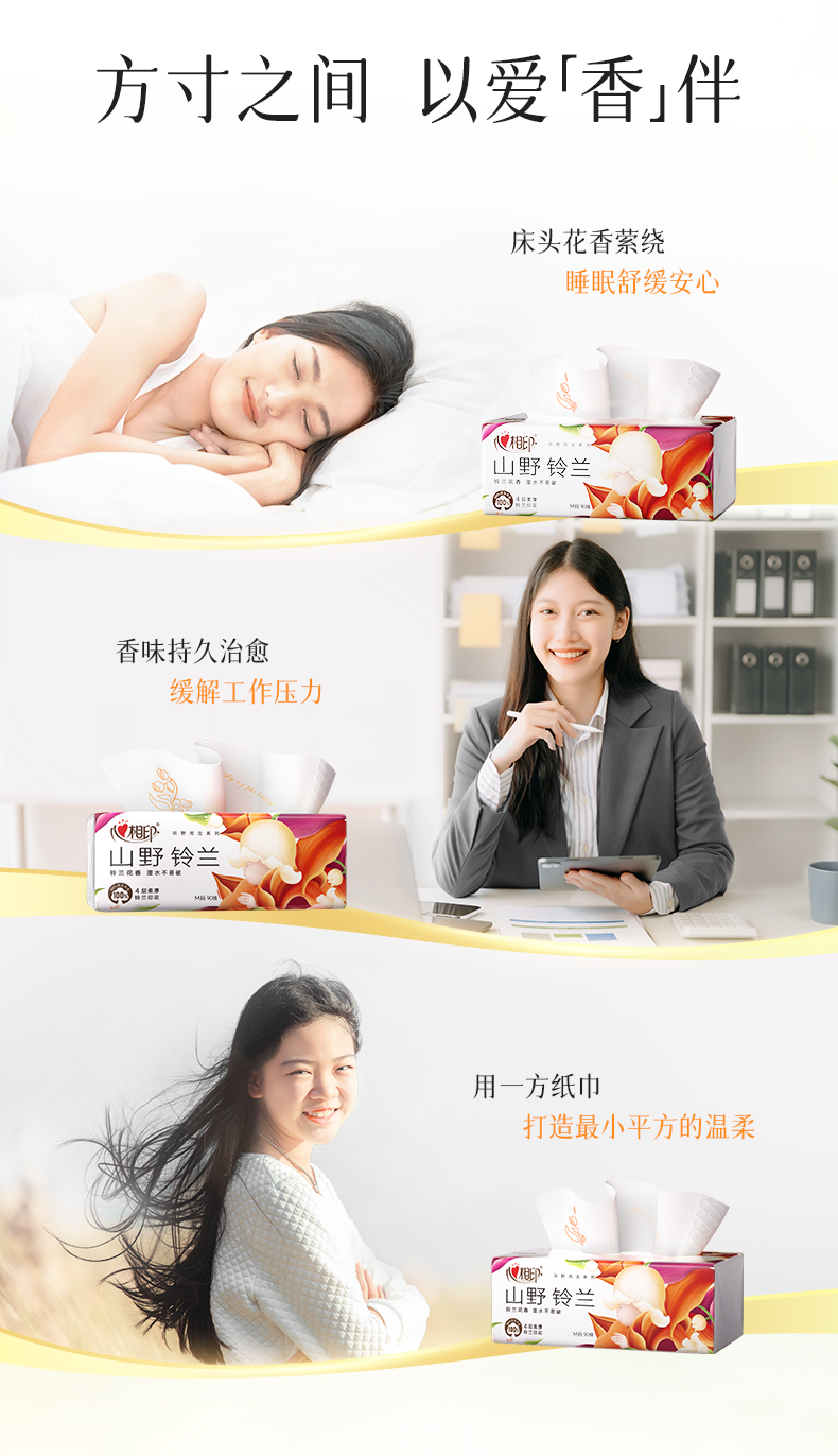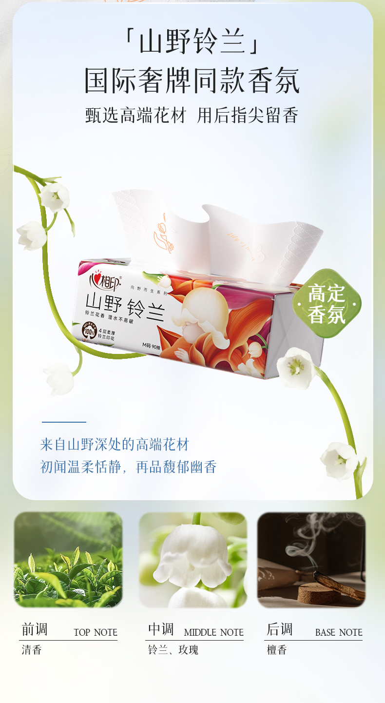 心相印 向野而生90抽四层塑装面巾纸(铃兰印花) DT41090 20包*1箱 白色(单位:箱)