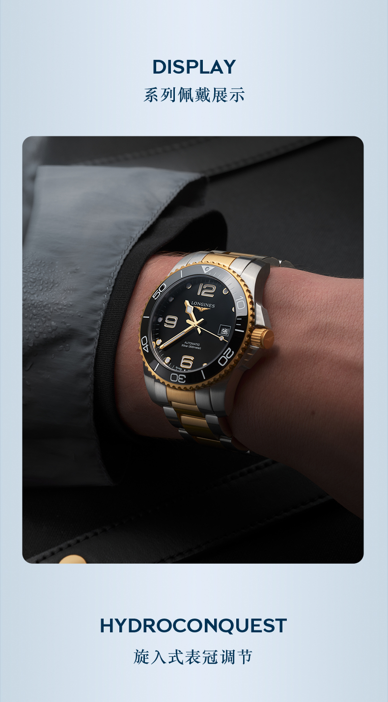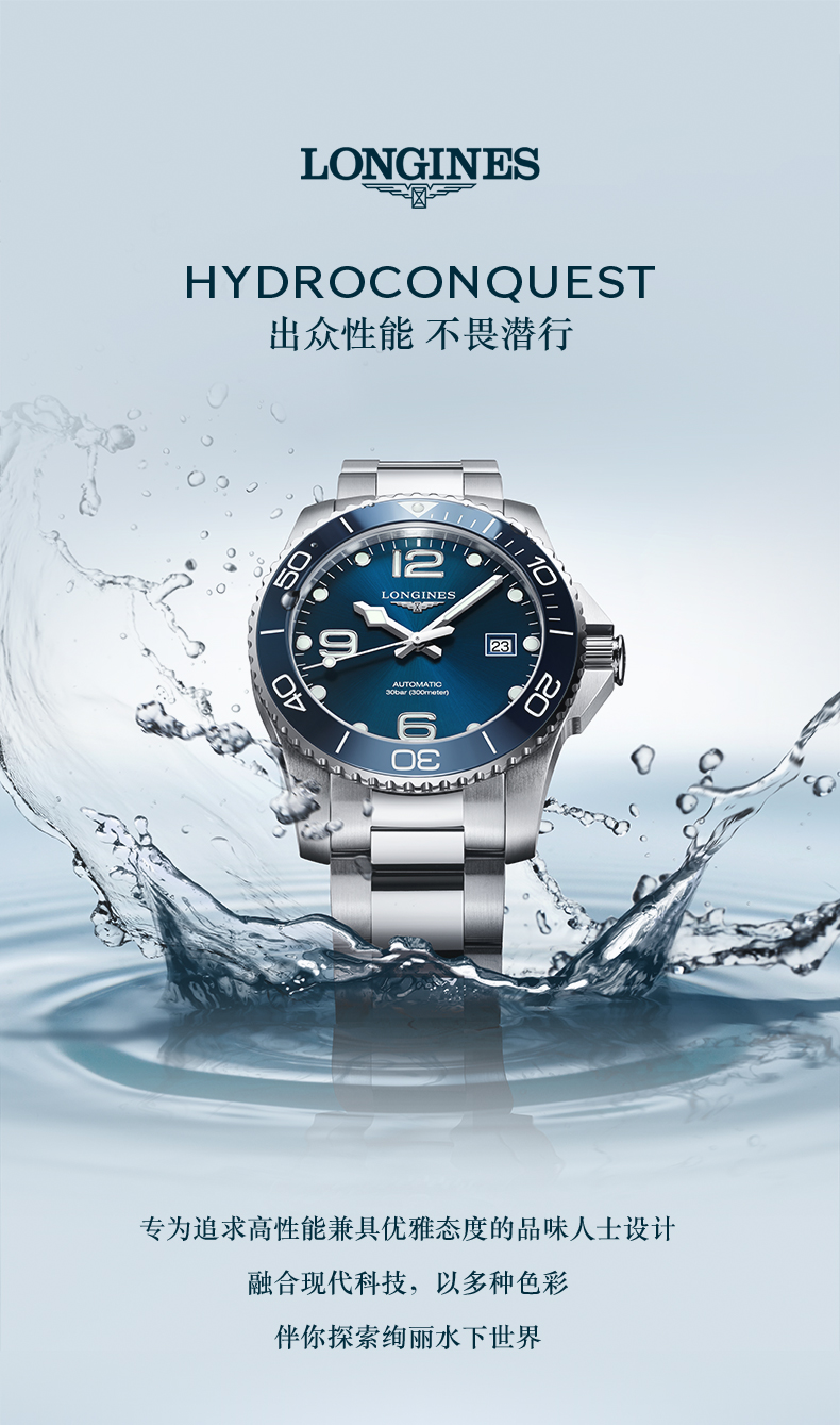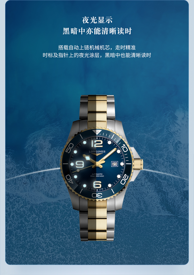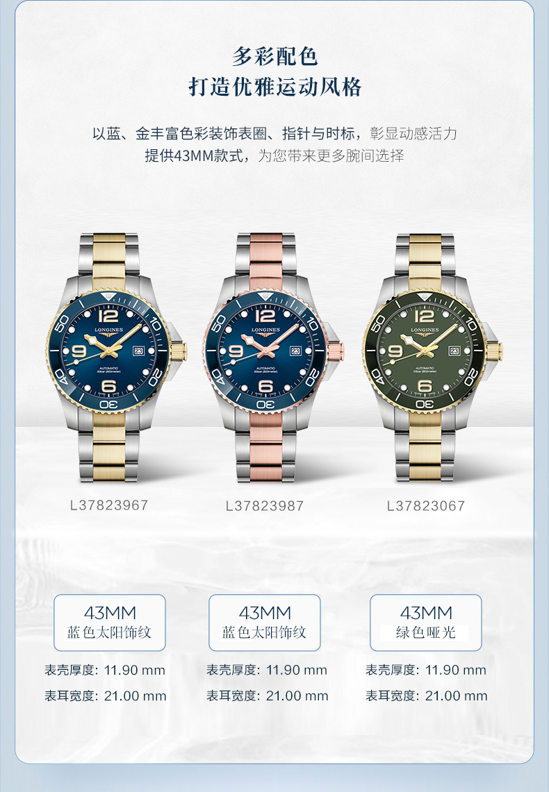 浪琴Longines瑞士手表 康卡斯潜水系列机械钢带男表L3.782.3.06.7 绿色哑光43.0 绿色