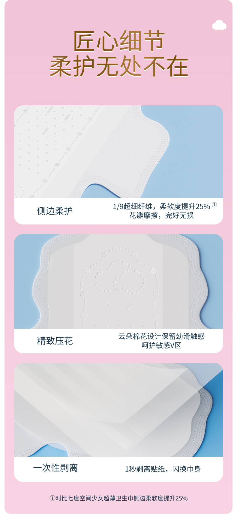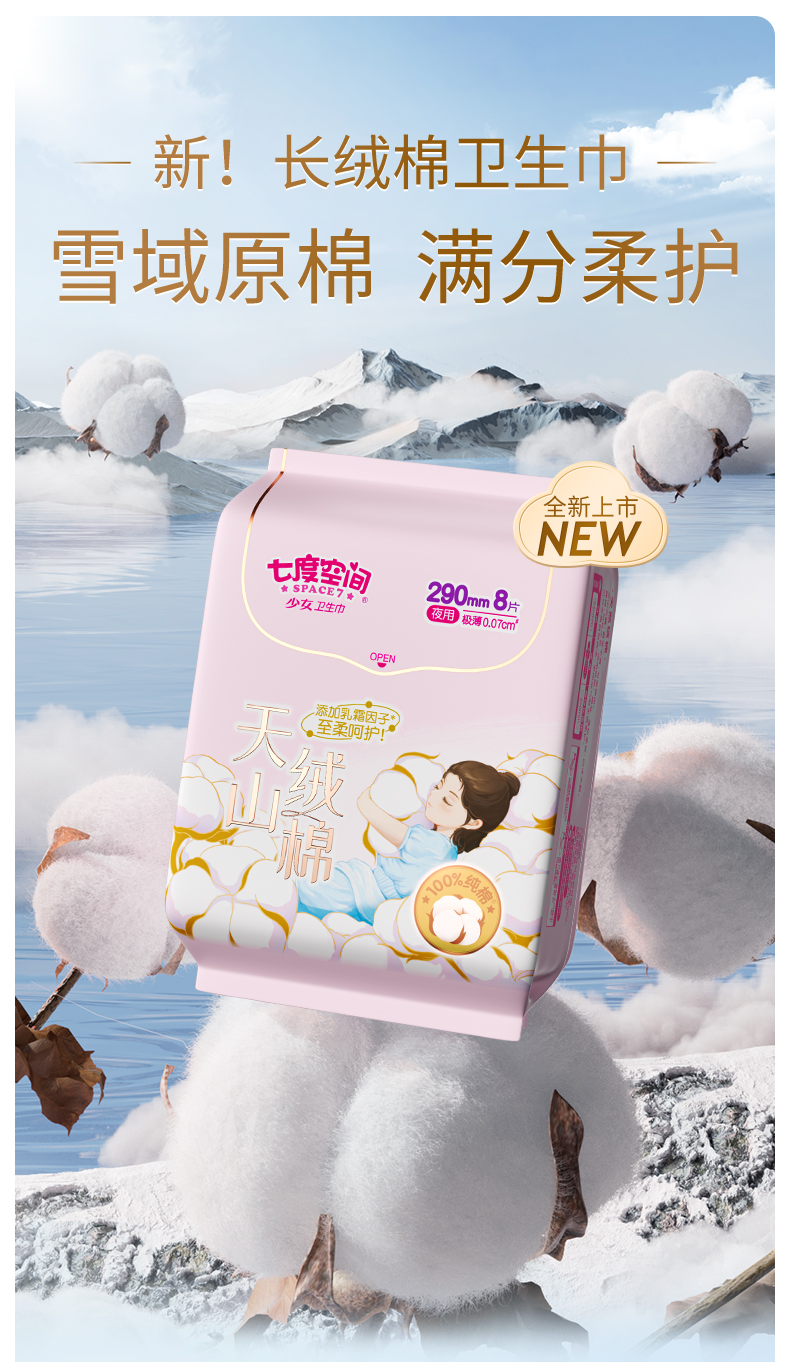 七度空间(SPACE 7) 天山绒棉极薄纯棉夜用290mm*8片 QRD6208 5包*1组 白色(单位:组)