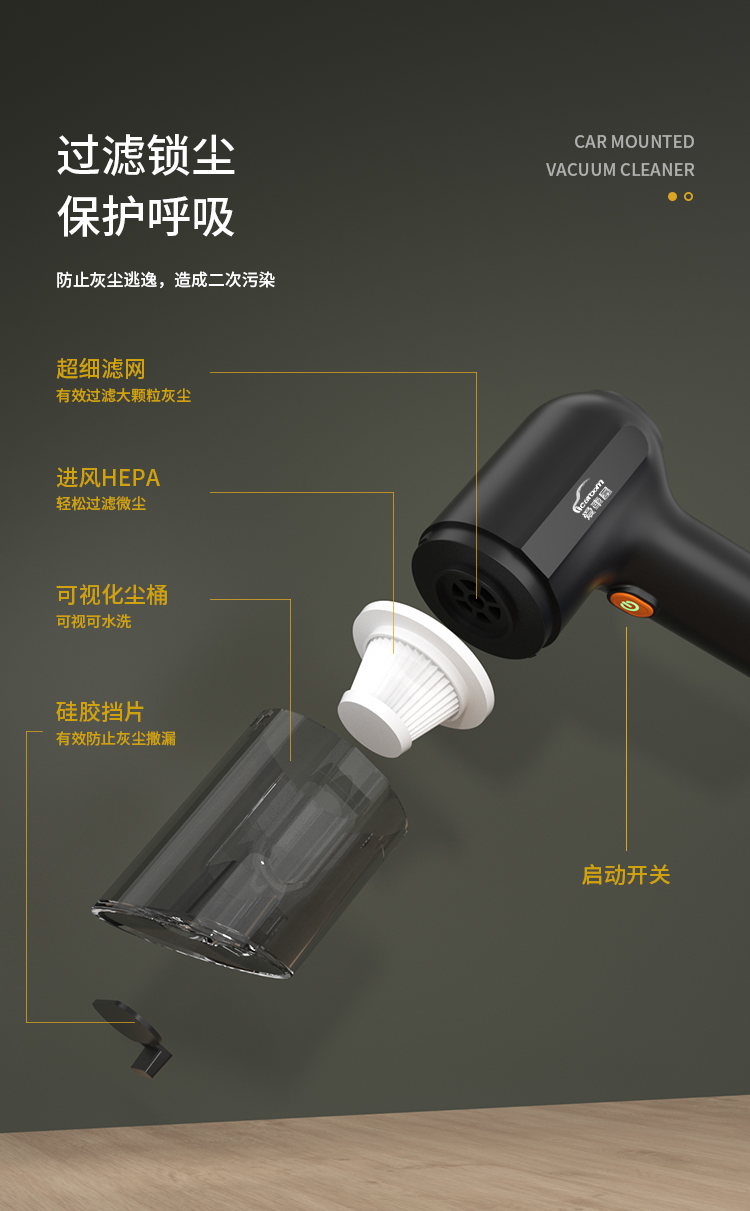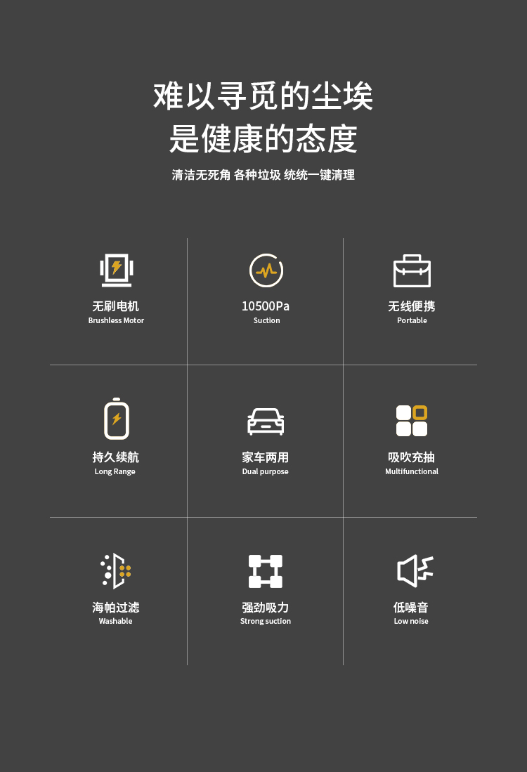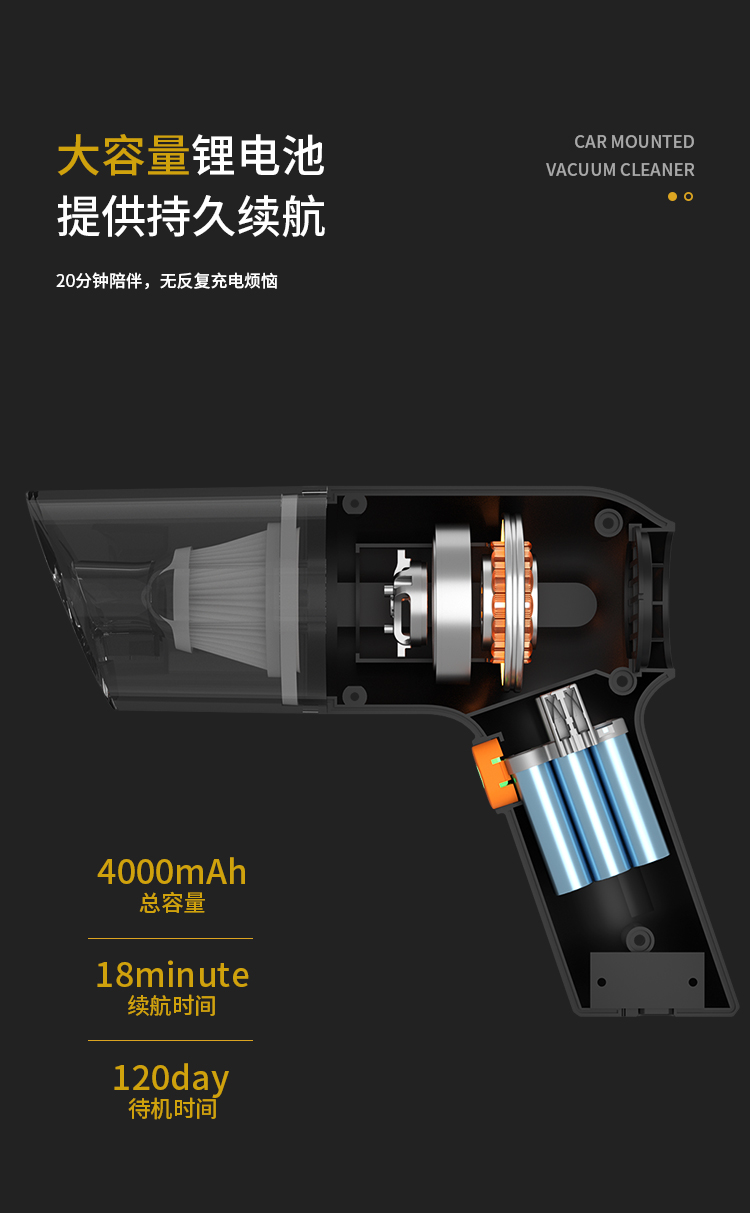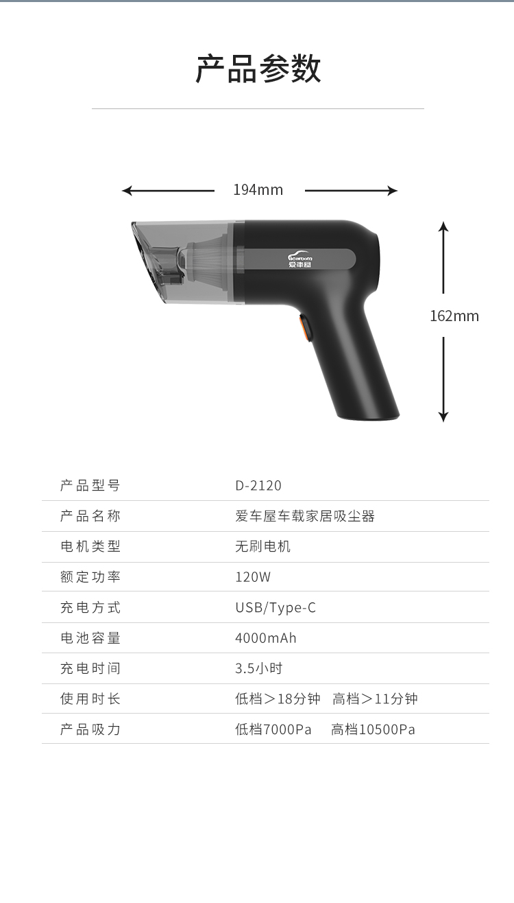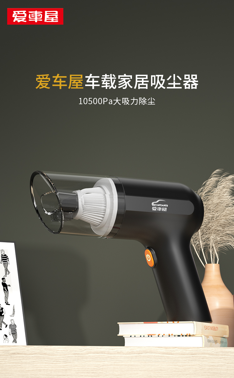 爱车屋(ICAROOM) 无线吸尘器 D-2120 10500pa吸力 黑色 黑色(单位:个)