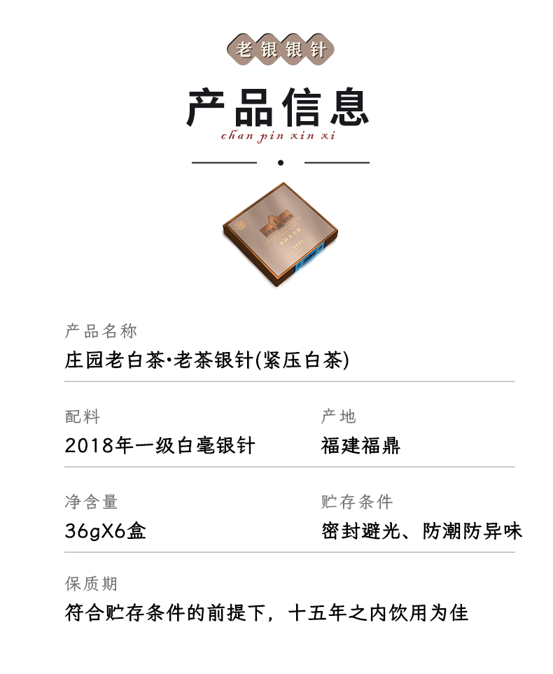 六妙 庄园老茶银针2018年 福鼎白茶白毫银针 216g*1 银色(单位:盒)
