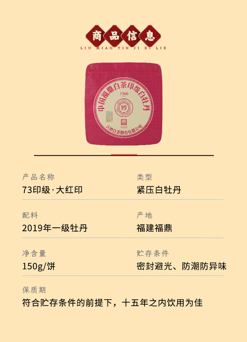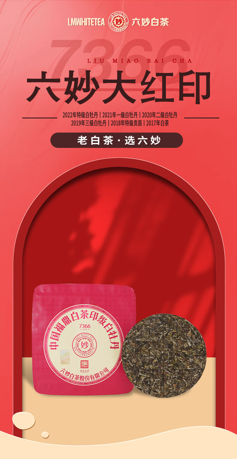 六妙 7366大红印2019年 福鼎白茶一级白牡丹 150g*5小包 佳人粉(单位:盒)