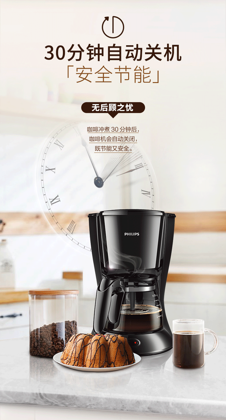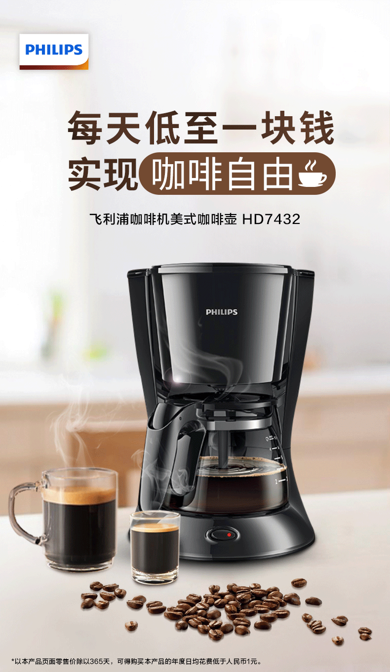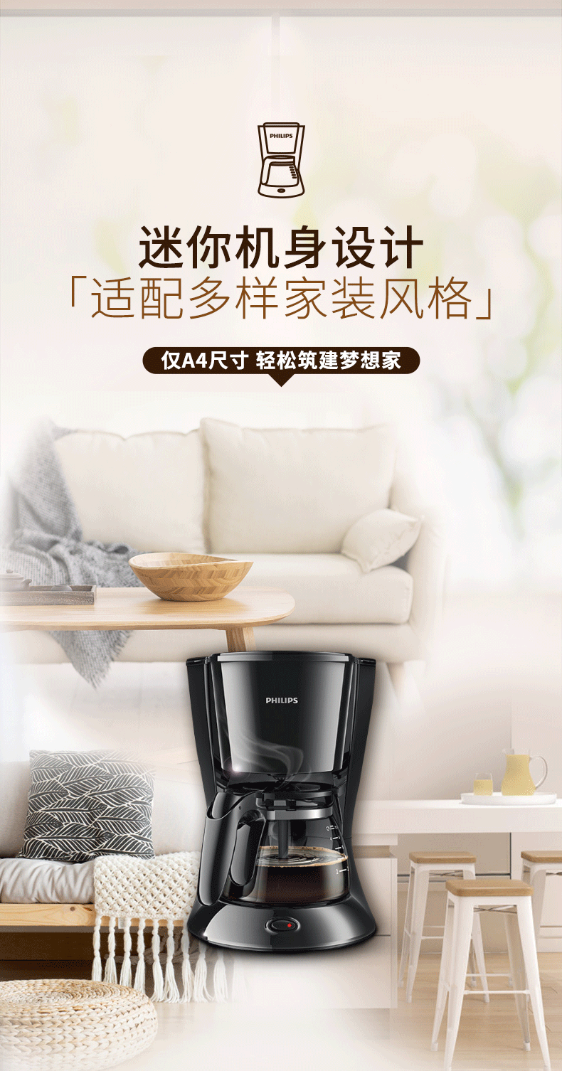 飞利浦(PHILIPS)咖啡机 家用滴漏式美式MINI咖啡壶 HD7432/20 (单位:台) 黑色