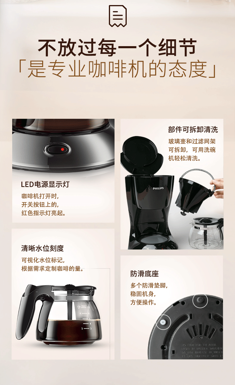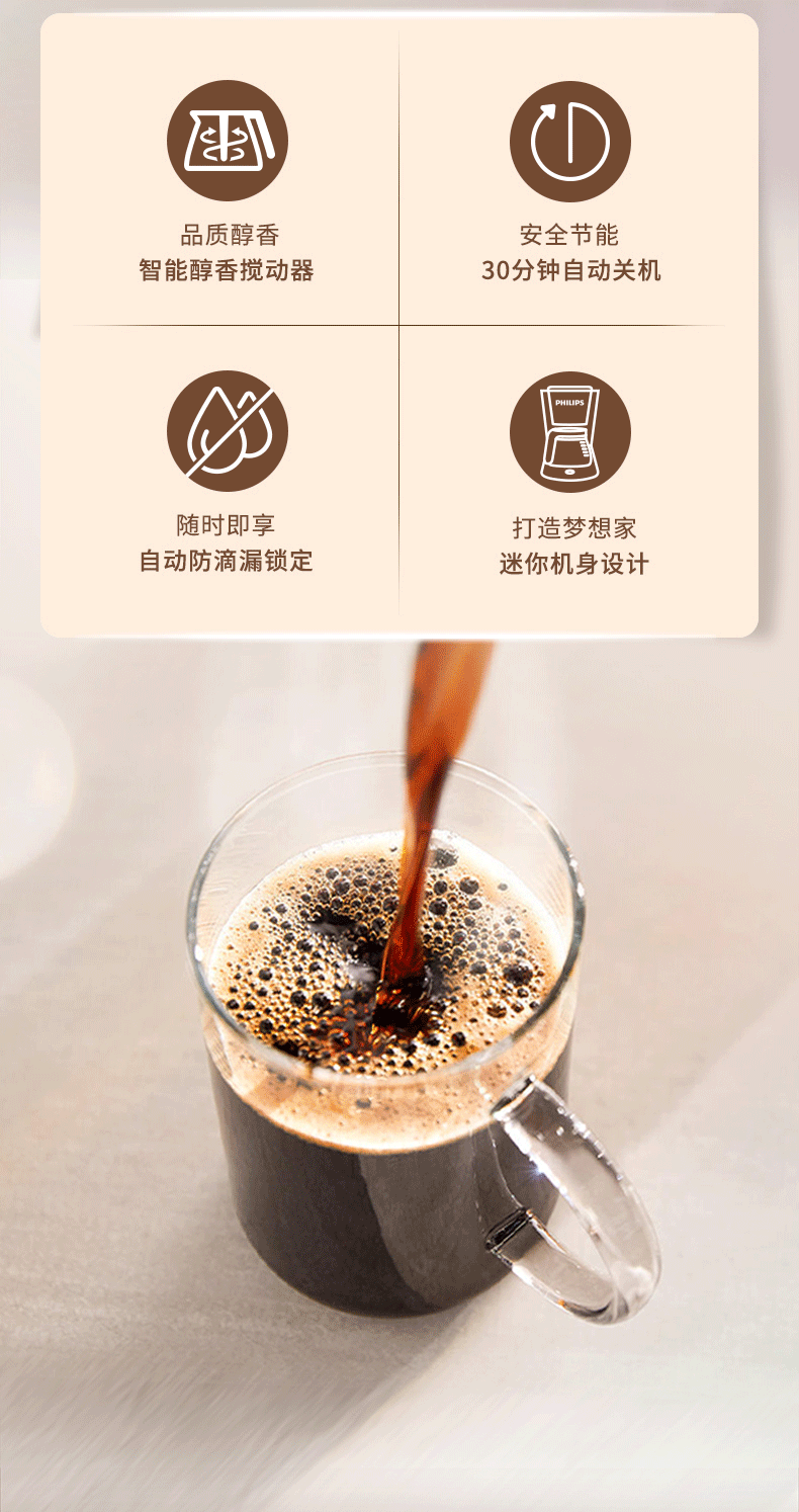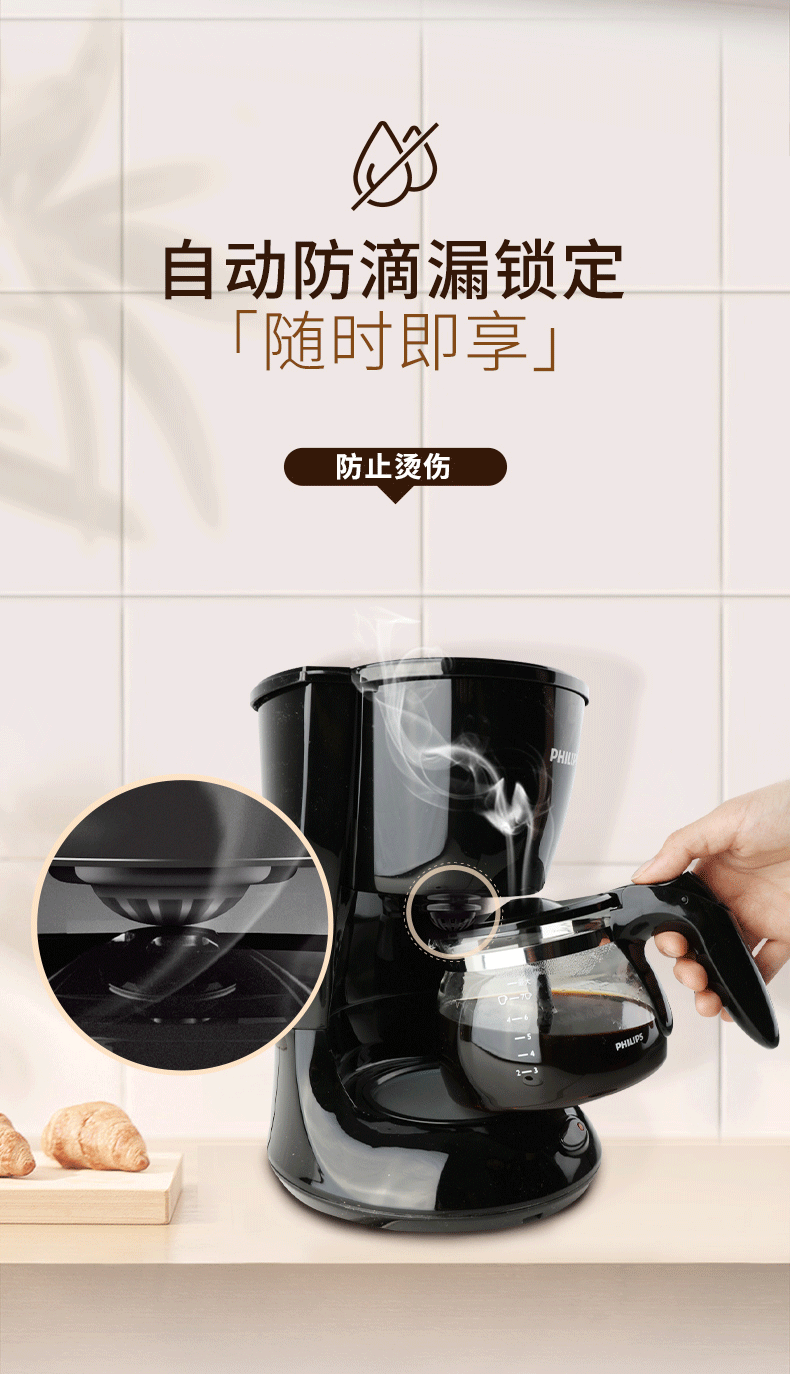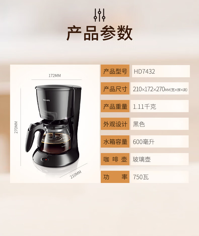 飞利浦(PHILIPS)咖啡机 家用滴漏式美式MINI咖啡壶 HD7432/20 (单位:台) 黑色