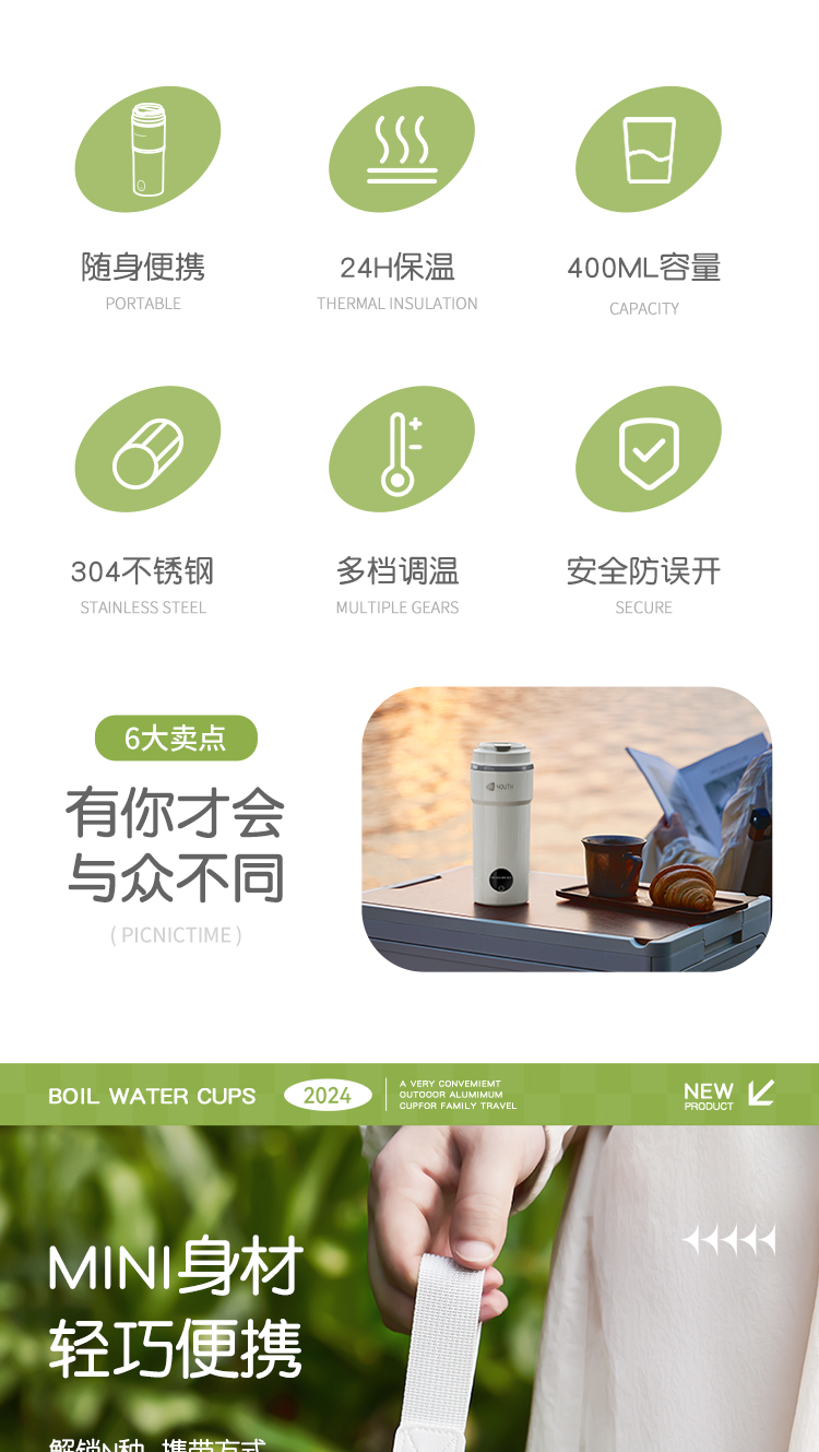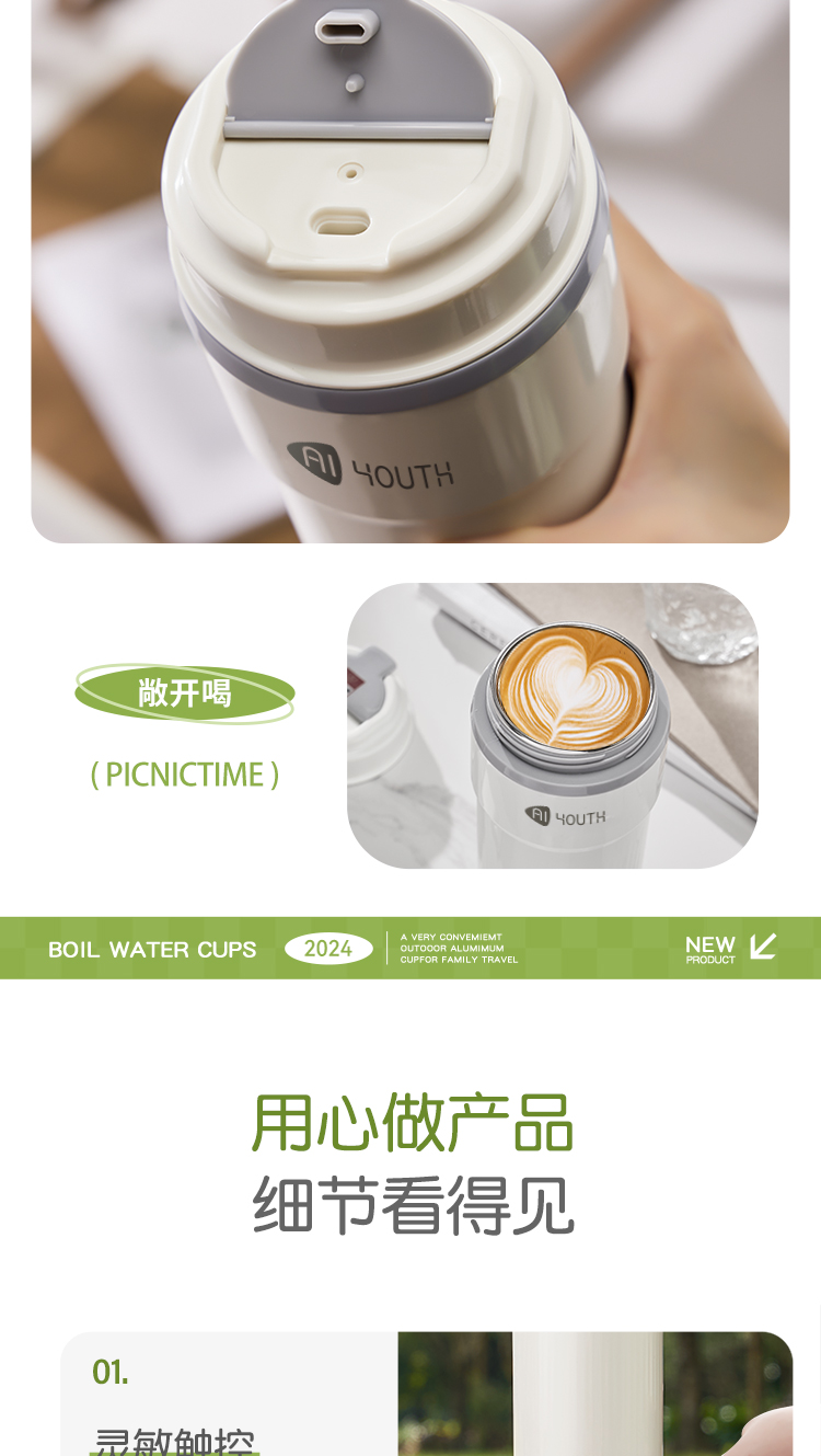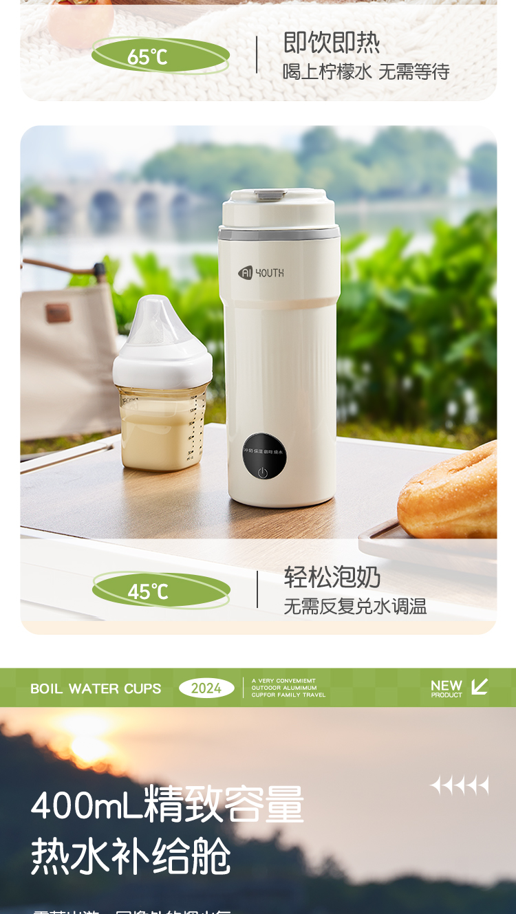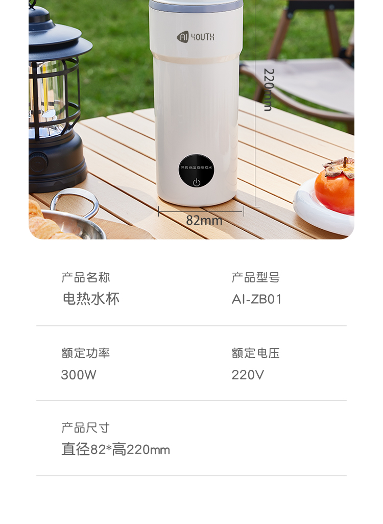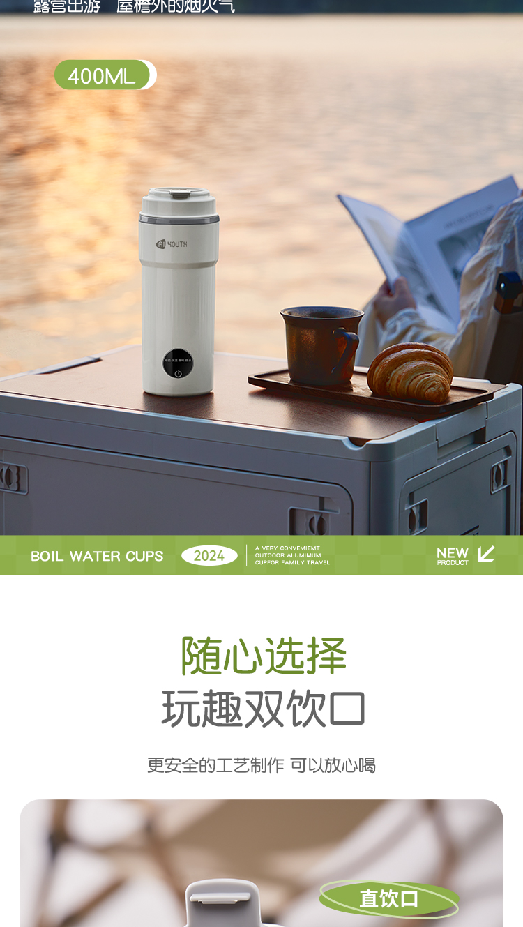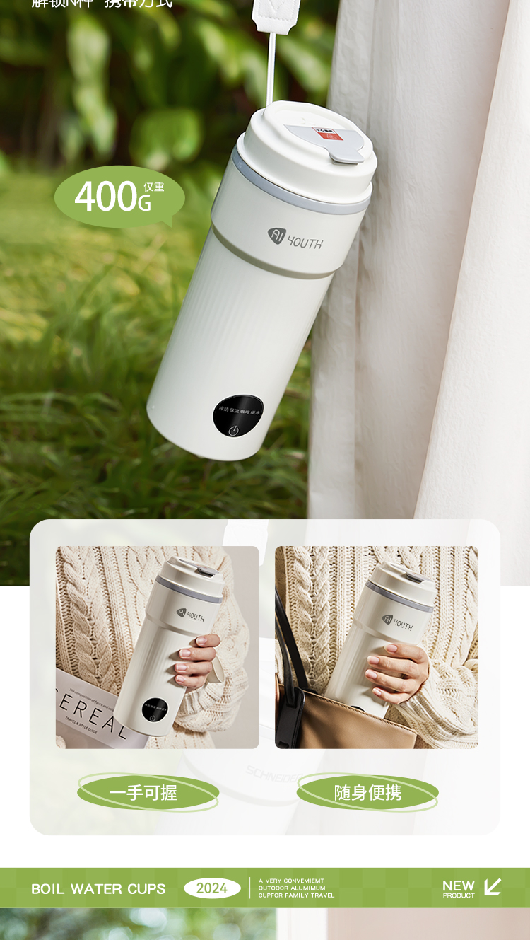 艾青春(AIYOUTH) AI-ZB01 400ML 便携式电热水杯 白色(单位:台)