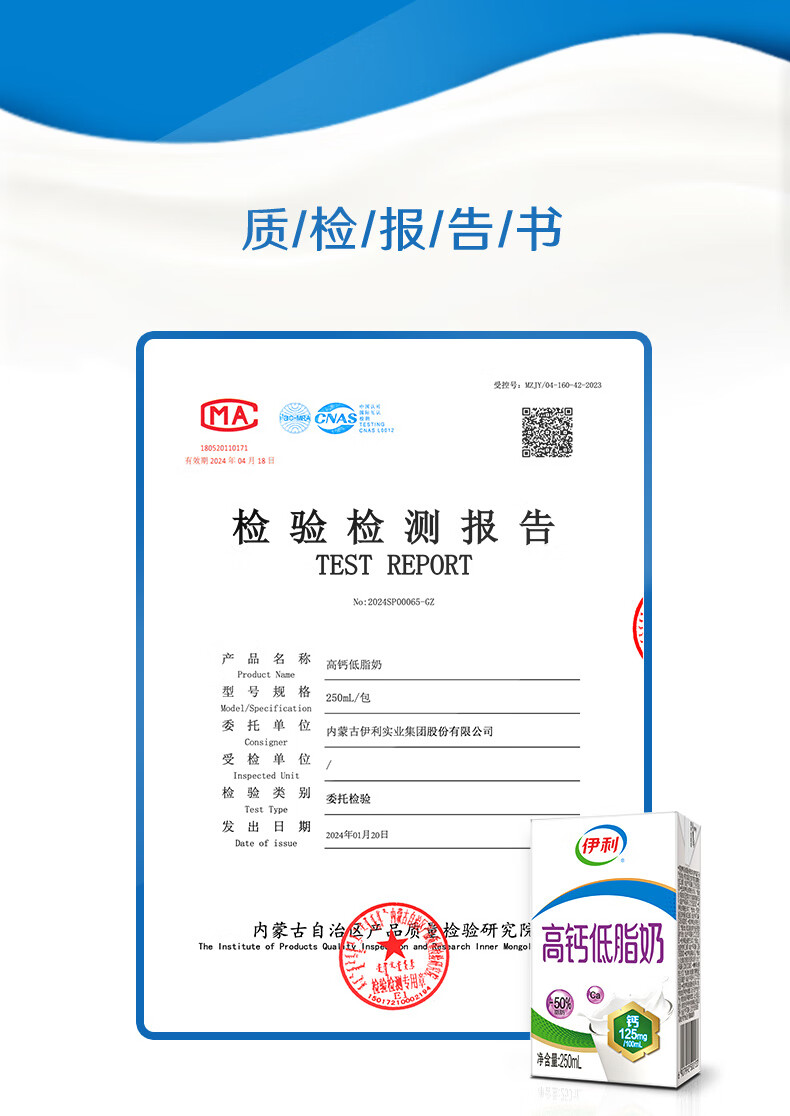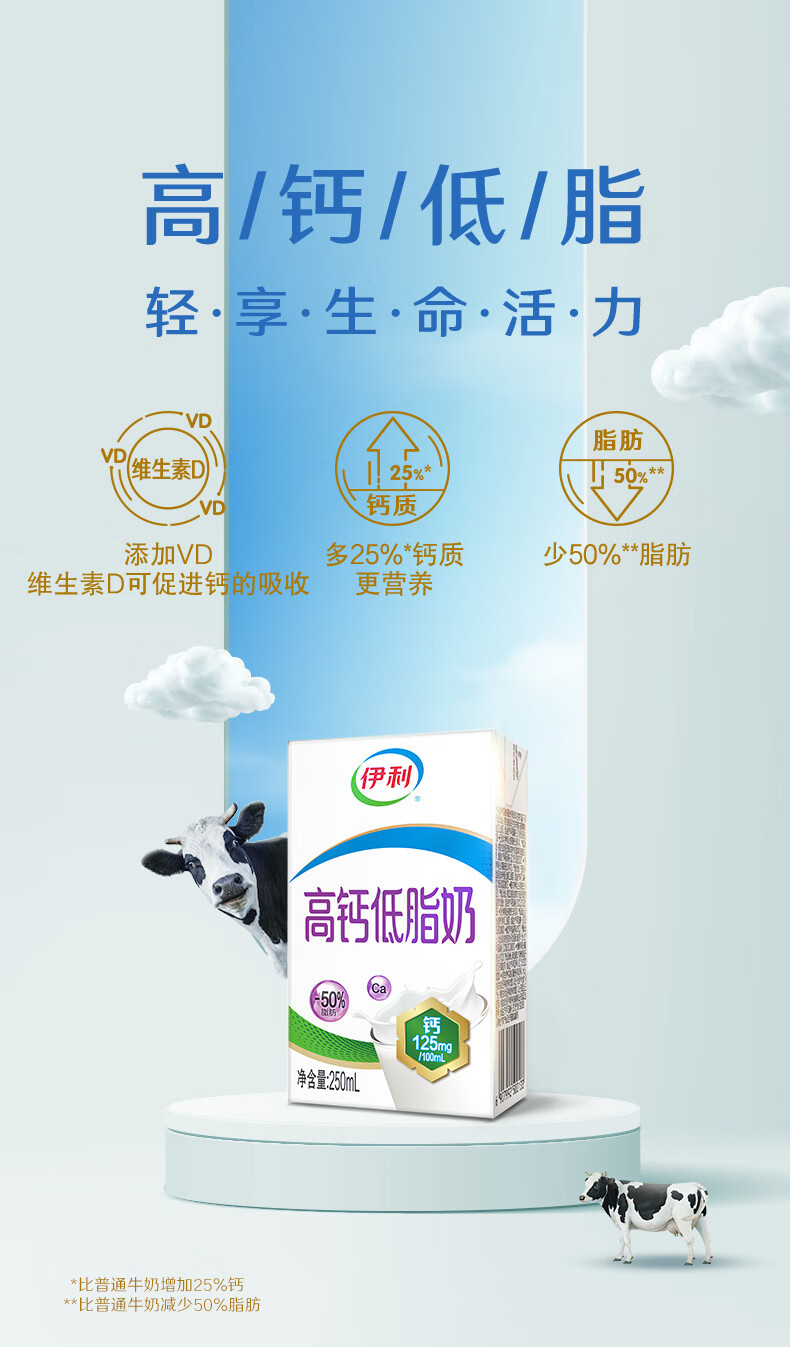 伊利 高钙低脂奶 加钙 250ml*21支*1箱 混色(单位:箱)