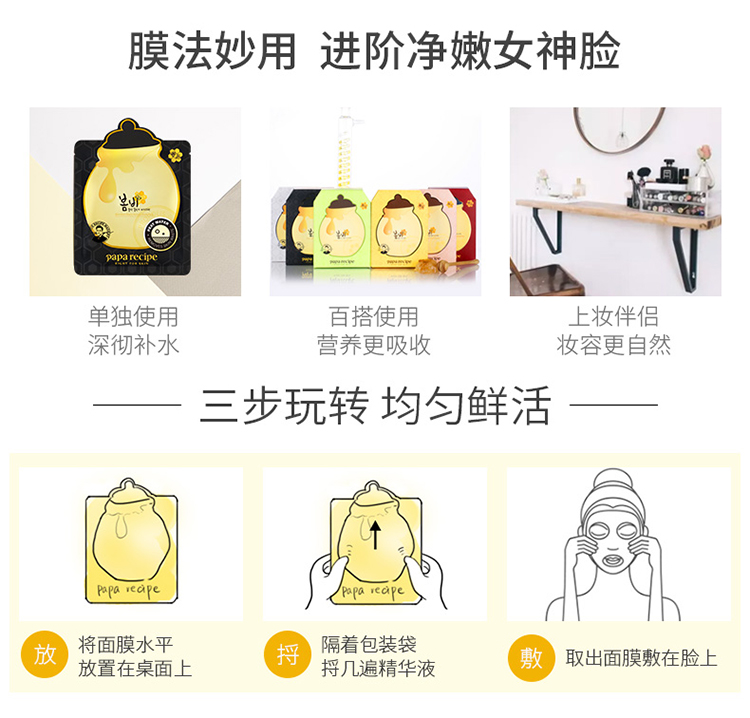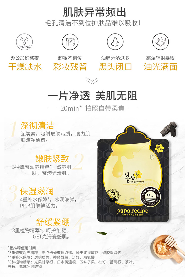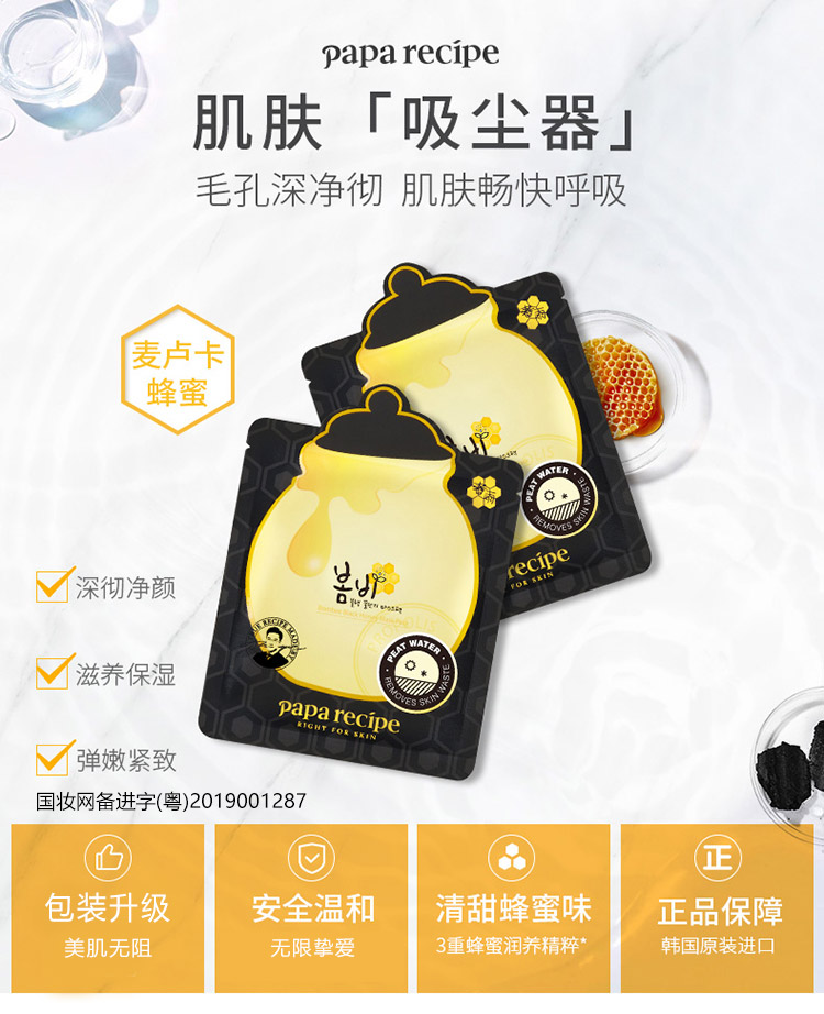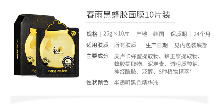 春雨(Papa recipe)黑色麦卢卡蜂胶清洁面膜10片 黑色