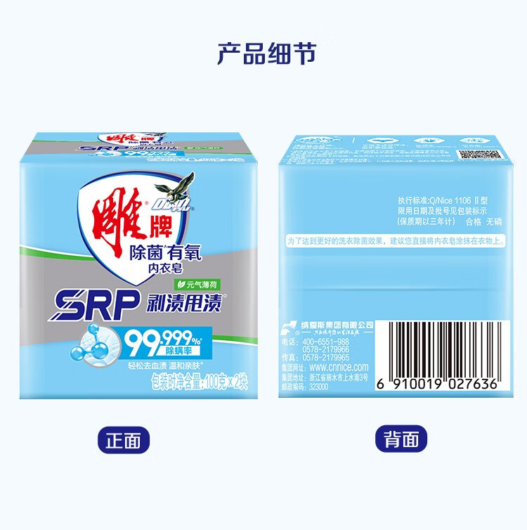 100g*2雕牌除菌有氧内衣皂(2组) 水蓝色