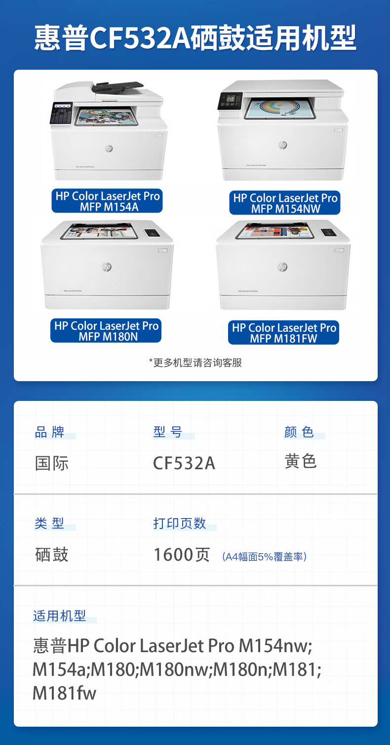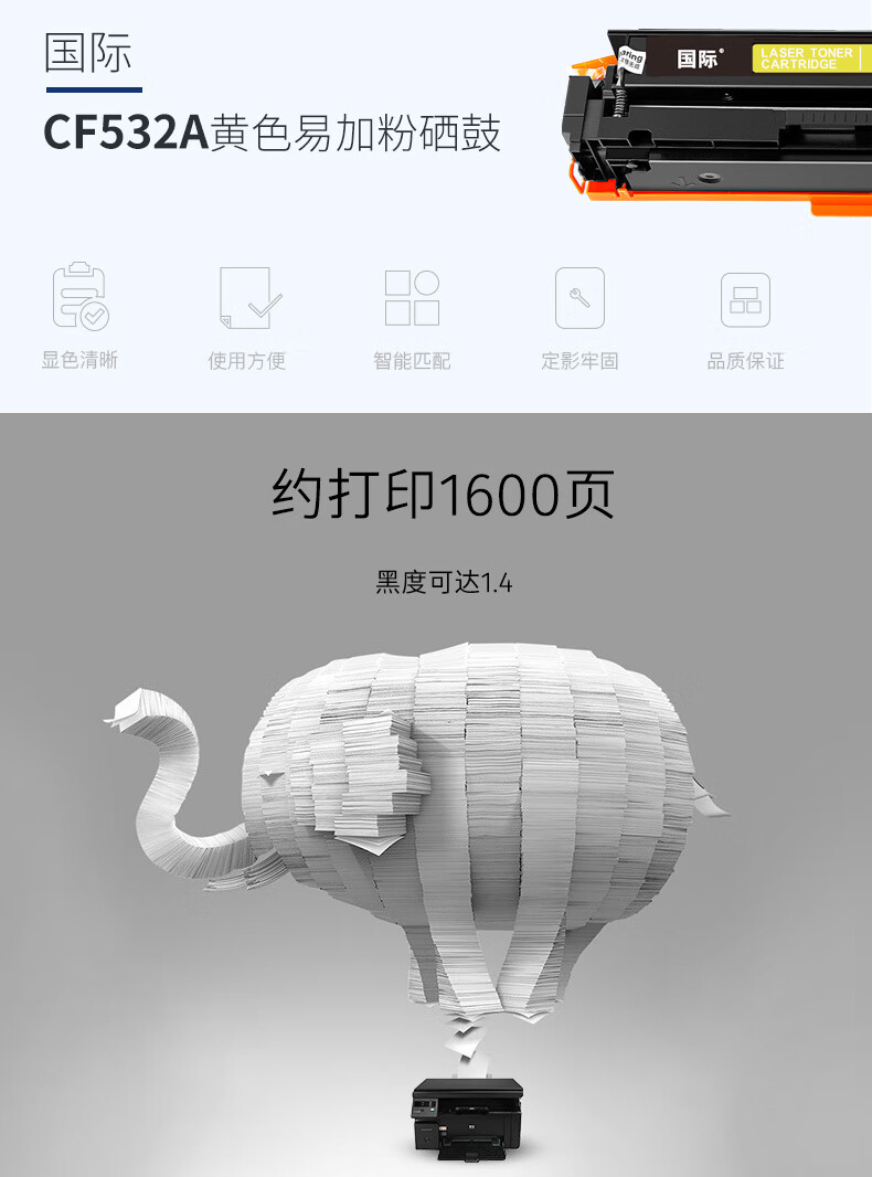 国际 CF532A 打印量约1300页 适用惠普HPM154a/M154nw/M180N/M181FW 硒鼓 1.00 只/支 (计价单位:支) 黄色