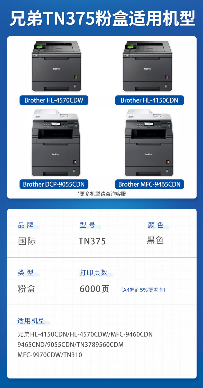 国际 TN-370BK 打印量约2500页 适用兄弟HL-4150CDN/4570CDW/9055CDN/9465CD硒鼓 硒鼓 1.00 只/支 (计价单位:支) 黑色