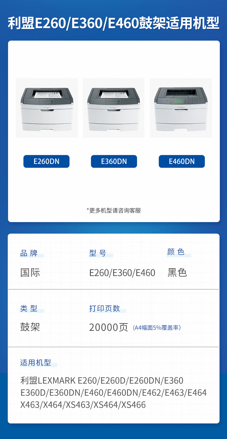国际 BF-DR E260 打印量30000页 适用利盟LEXMARK E260/E264/E360/E463/E464/E466 硒鼓 1.00 只/支 (计价单位:支) 黑