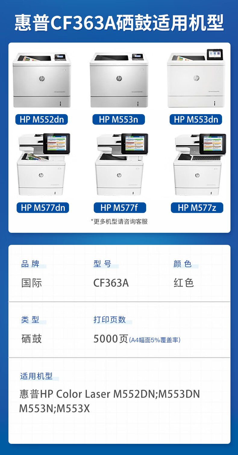 国际 BF-CF363A 高容量(适用惠普HP M553DN M553N/X M552DN 508A) 5000页 硒鼓 (计价单位:只) 红色