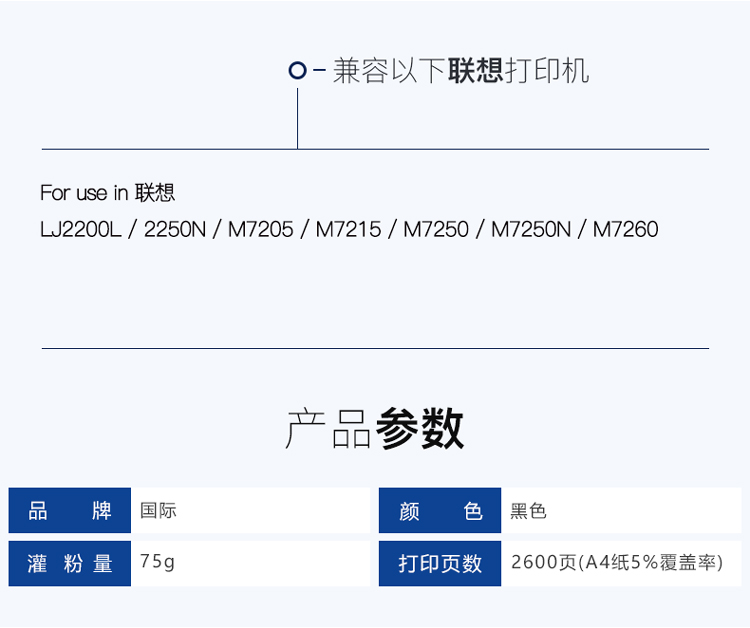 国际 BF-LT2822 (适用联想LJ2200L/2250N/M7205/M721) 2600页 墨粉盒 (计价单位:只) 黑色