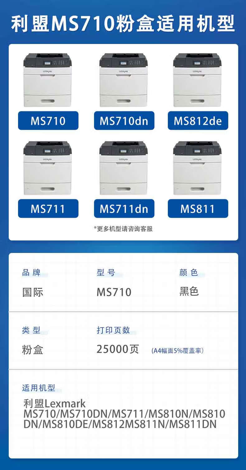 国际 MS710 (适用利盟 MS710/MS812dn/MS810de/MS811dn硒鼓) 打印量约25000页 粉盒 (计价单位:只) 黑色