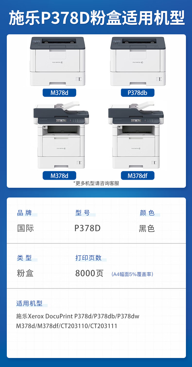国际 P378d 大容量(适用富士施乐DocuPrint P378dw /P378db/M378d /M378df打印机)CT203111 打印量约8000页 粉盒 (计价单位:只) 黑色