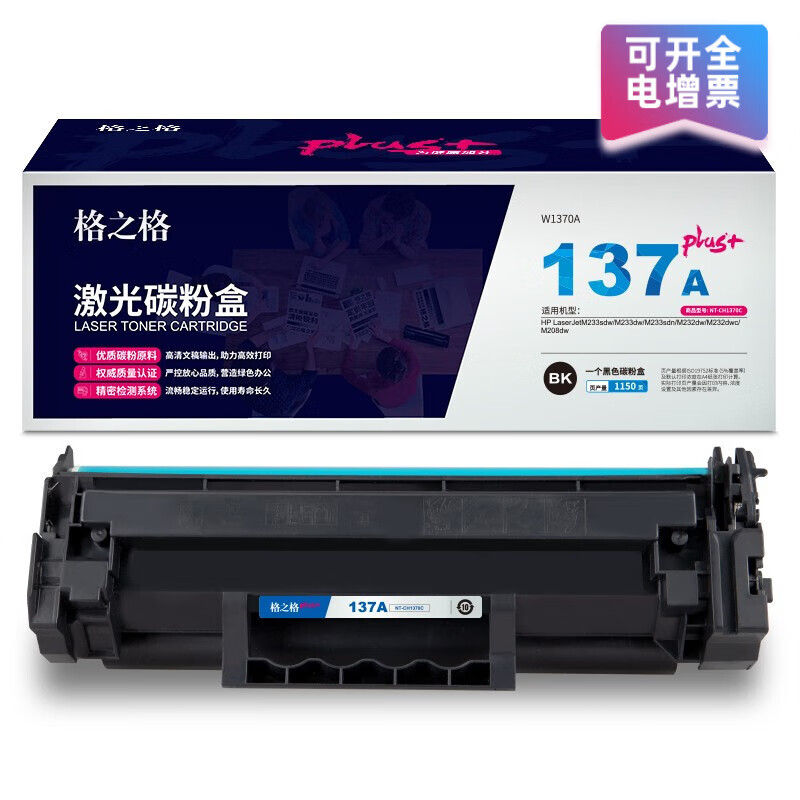 格之格 NT-CH1370CPLUS+ 适用机型:HP M233sdw/M233dw/M233sdn/M232dw/M232dwc/M208dw页产量:1150页 硒鼓 (计价单位:只) 黑色