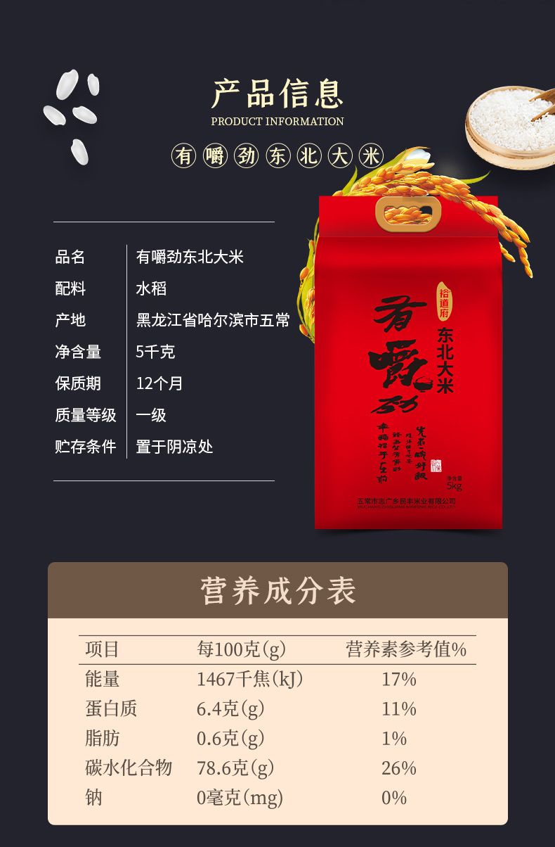 裕道府东北大米新米 有嚼劲5kg(单位:袋) 红色