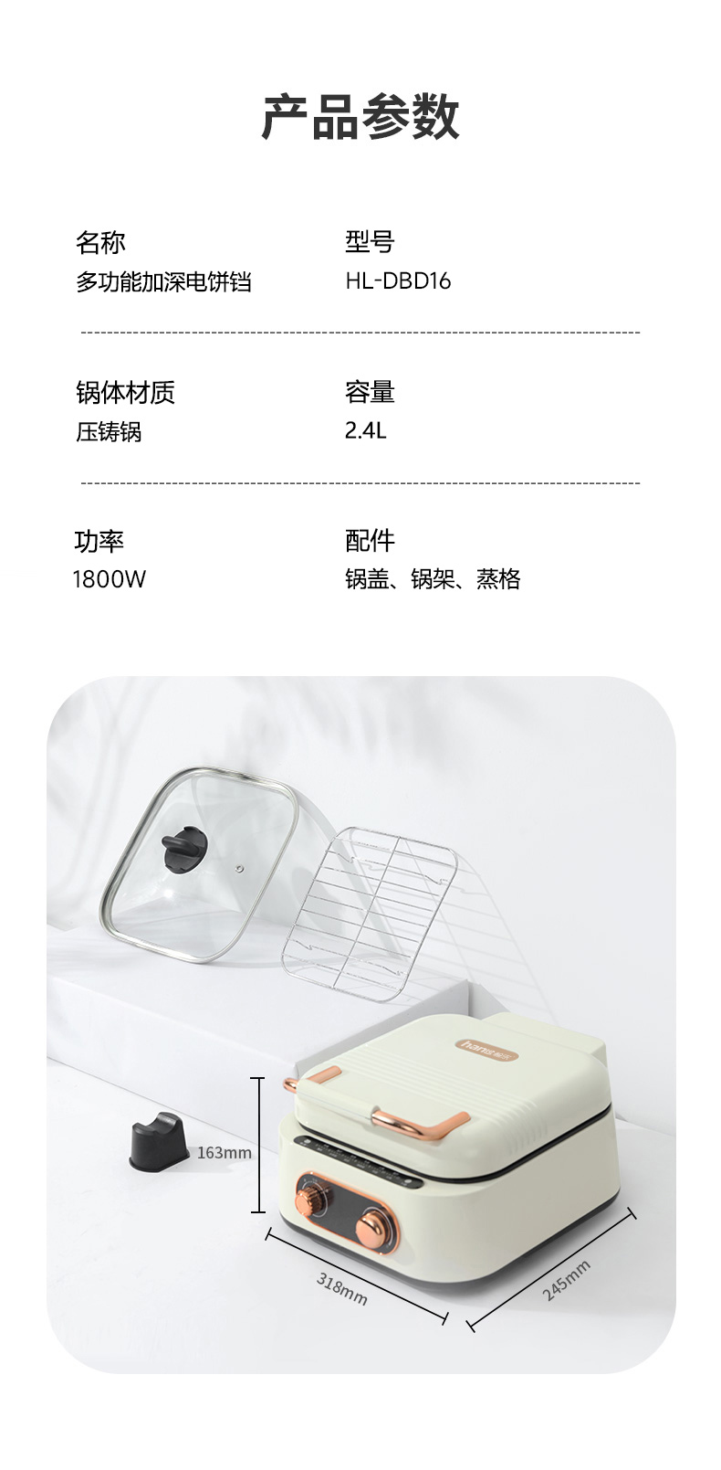 翰乐莫莱蒂米双面加热多功能电饼档HL-DBD16(套) 莫莱蒂米