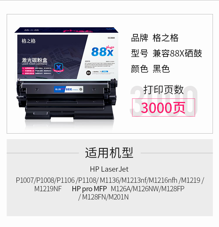 格之格 CC388X NT-PH388XXCplus+ 3000页 适用HP Laserjet P1007/P1008/1106/1108/M126a/M126nw 硒鼓 (计价单位:只) 黑色