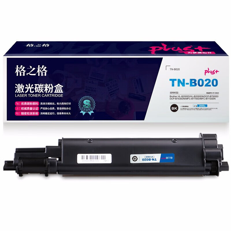 格之格 NT-CB020plus+ 2600页 Brother HL-B2000D/HL-B2050DN/DCP-B7500D/DCP-B7530DN 硒鼓 (计价单位:只) 黑色