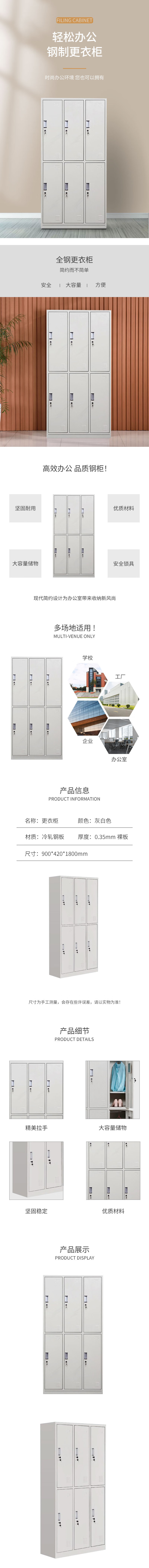 荣美盛 文件柜六门更衣柜/个 900*420*1800mm